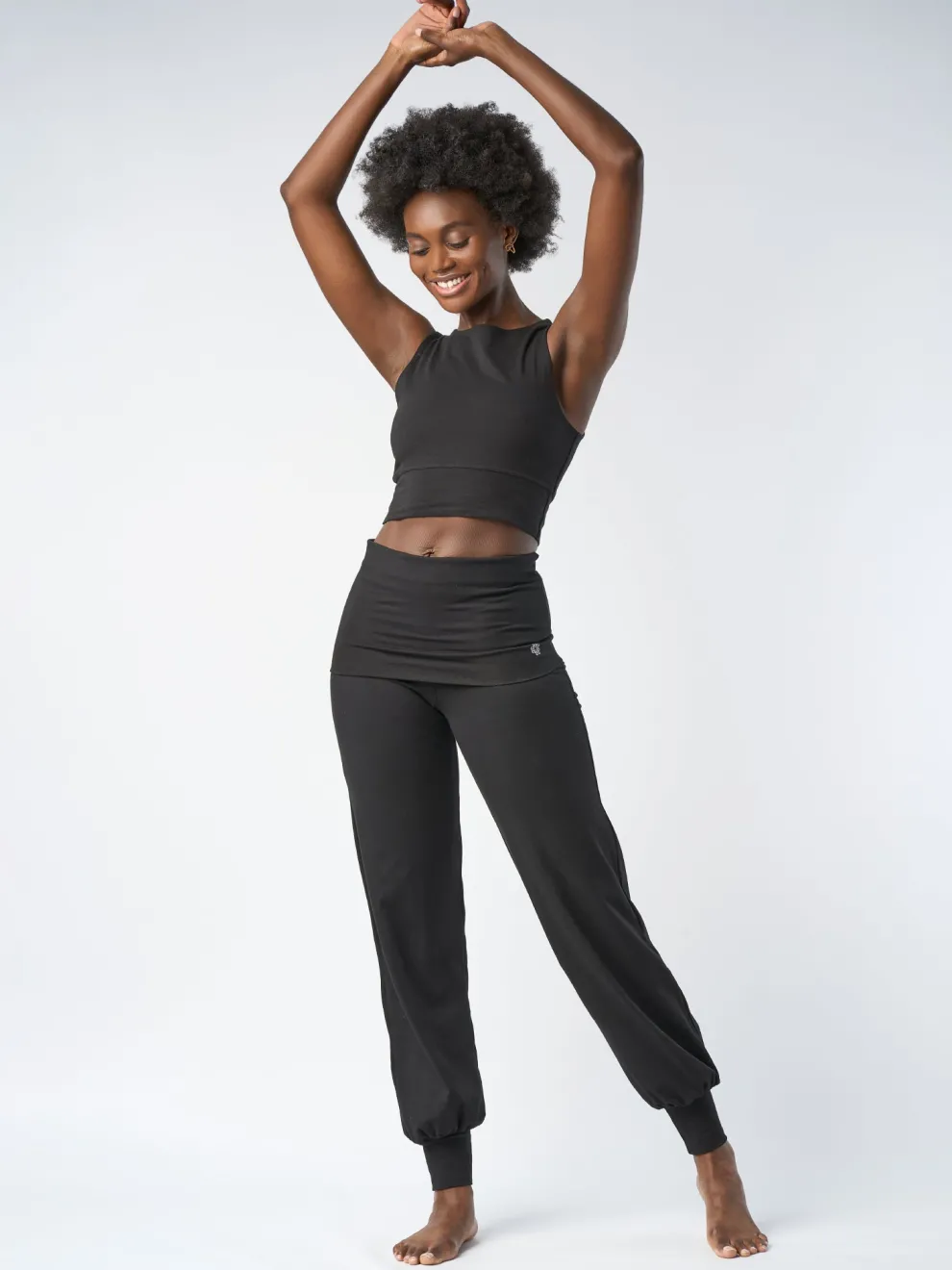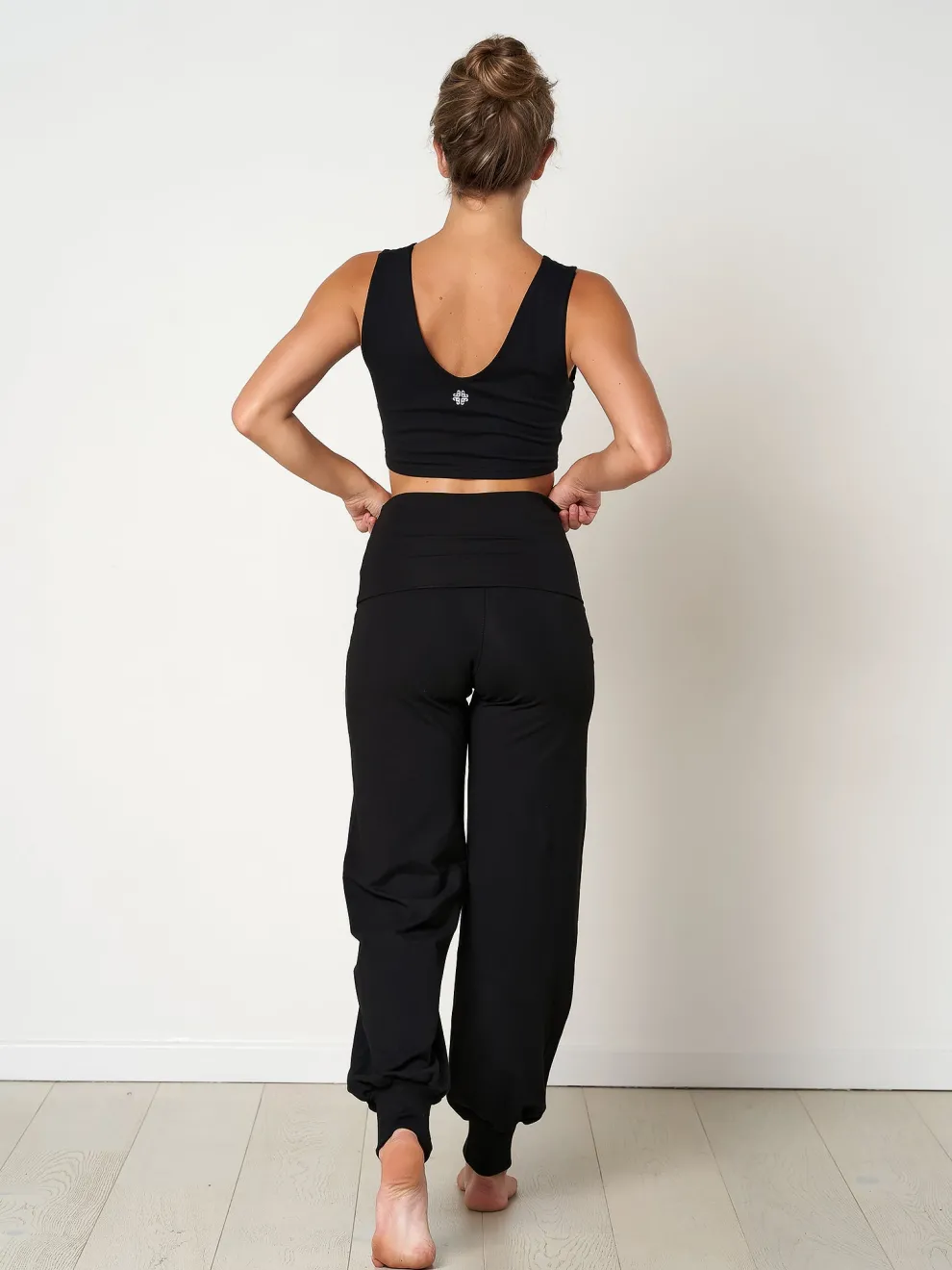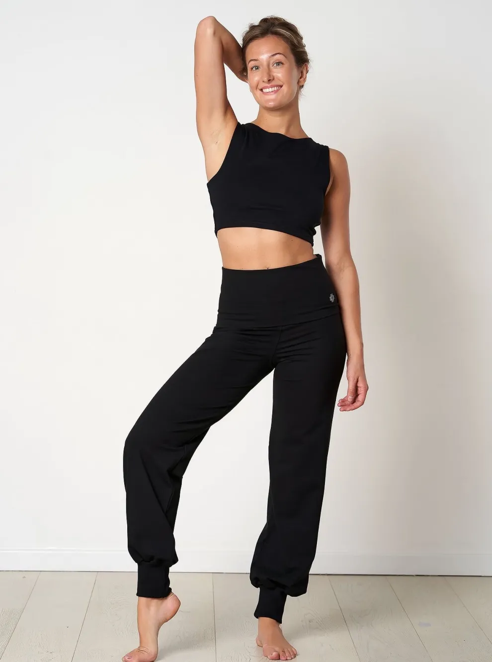 Our Aspire harem pants are designed with a deep and comfy fold over waistband to keep you warm and unrestricted around the vital central organs, allowing you to move with confidence or slouch in style!