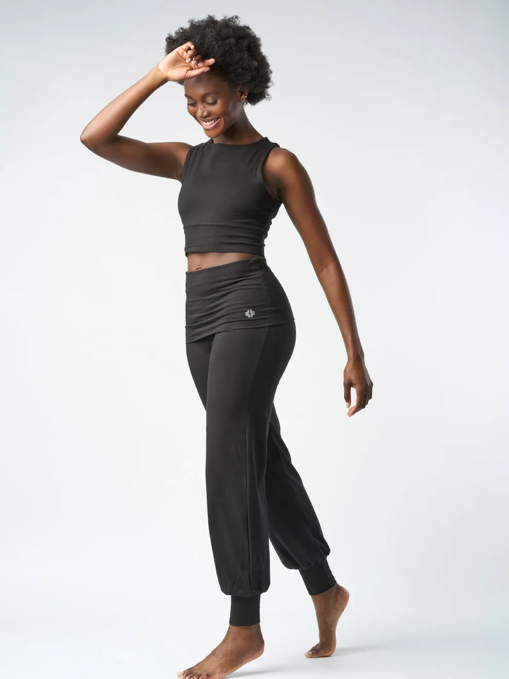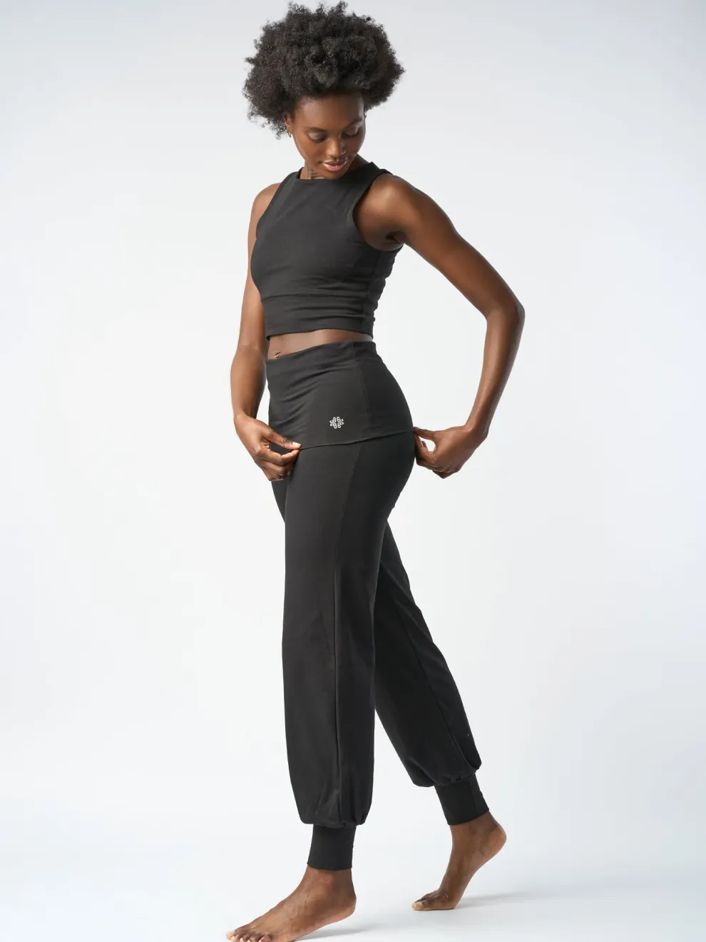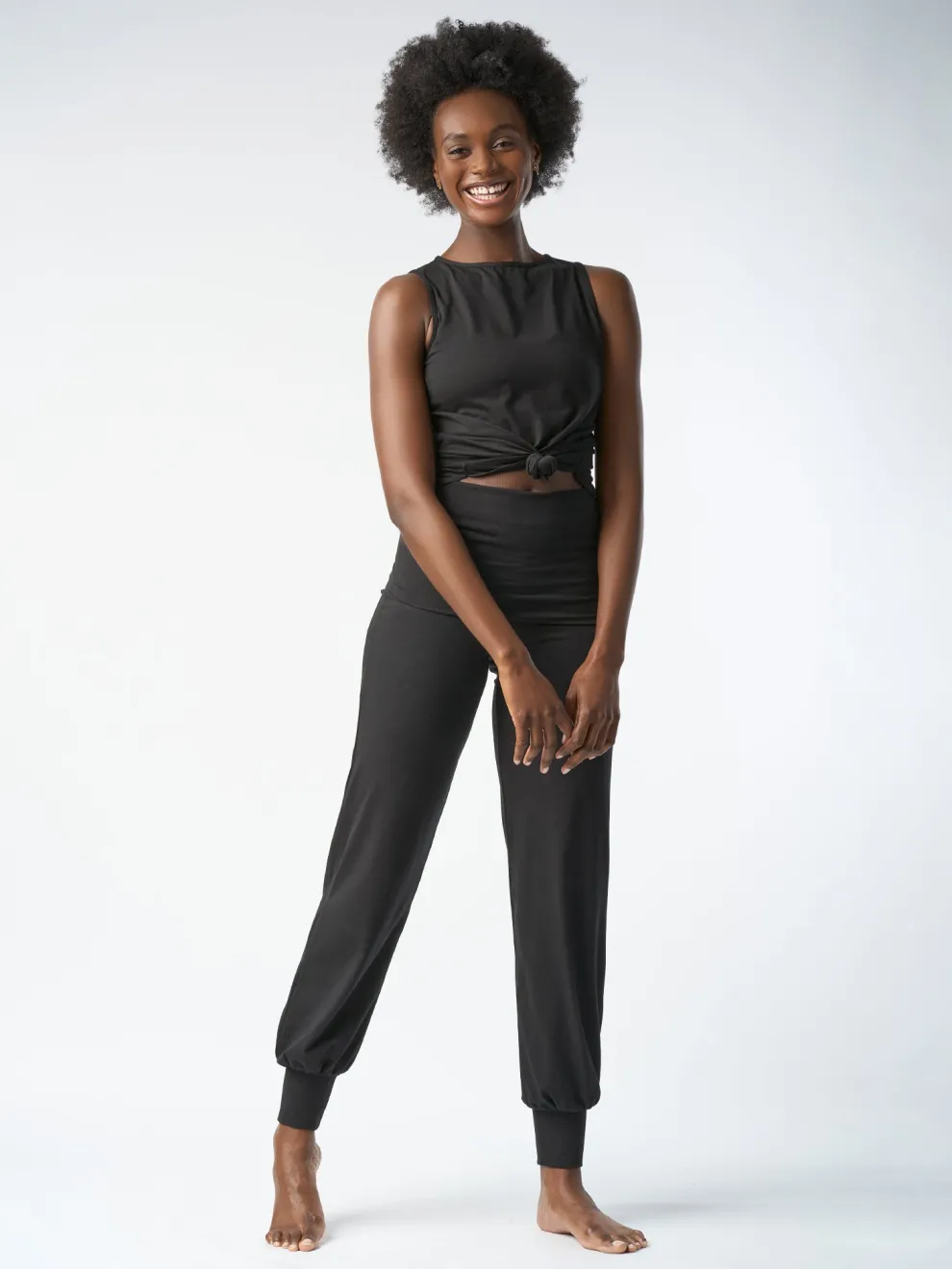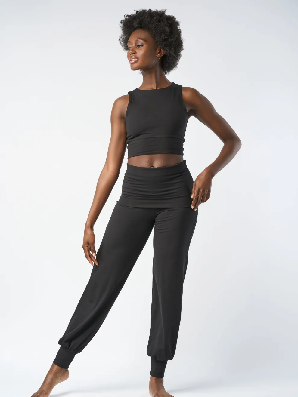 Our Aspire harem pants are designed with a deep and comfy fold over waistband to keep you warm and unrestricted around the vital central organs, allowing you to move with confidence or slouch in style!