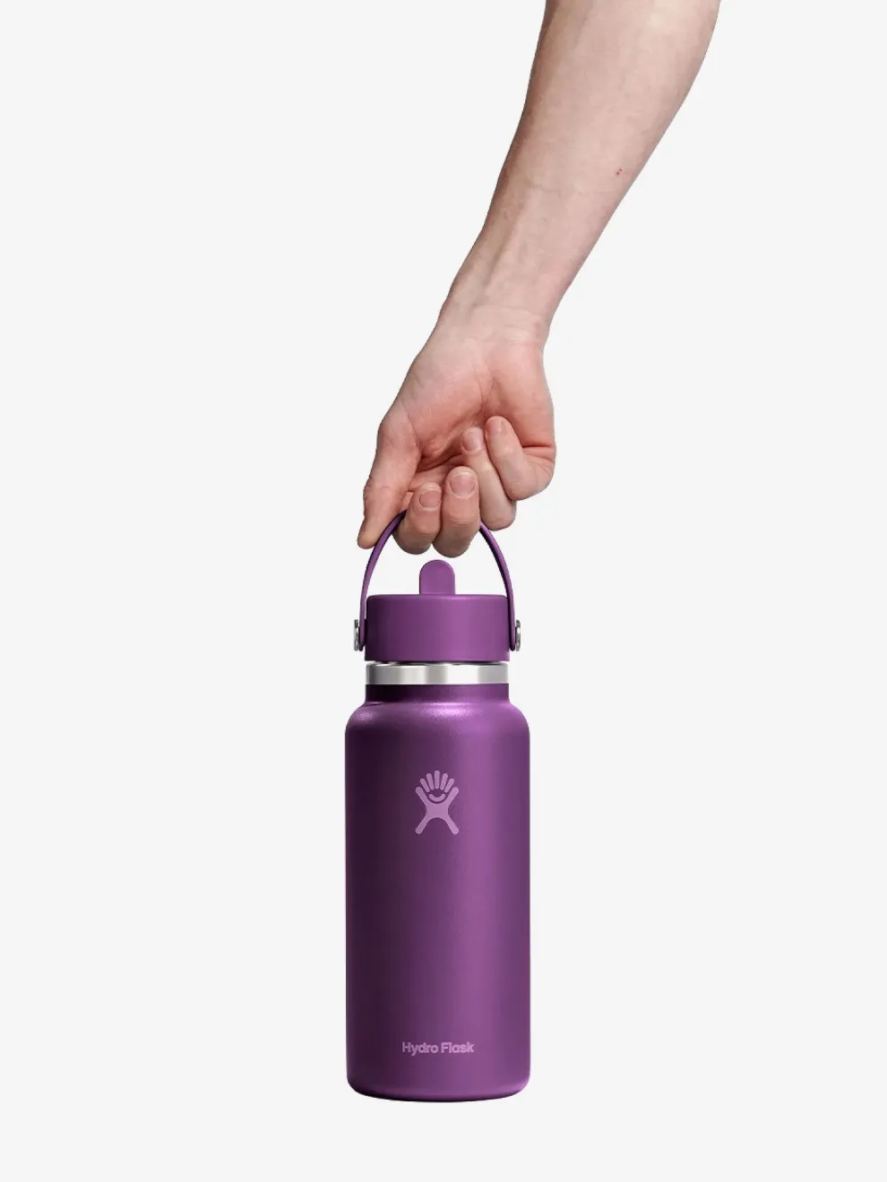 Flip it and sip it with the Hydro Flask 32 oz (946 ml) Wide Mouth Bottle With Flex Straw Cap. With a comfortable, flexible handle, the closeable, leakproof straw cap is easy to open and close with one hand, for on-demand hydration. Double-wall insulation keeps drinks cold up to 24 hours for cool refreshment. The insulated bottle easily fits ice cubes and is dishwasher safe.