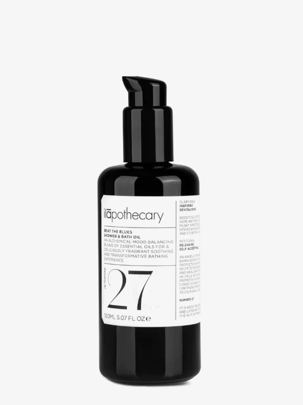 This shower & bath oil is an alchemical blend of essential oils of clary sage, petitgrain, rose geranium and tuberose that are known to balance the mood and boost self-esteem, for a deliciously fragrant soothing and transformative bathing experience.
