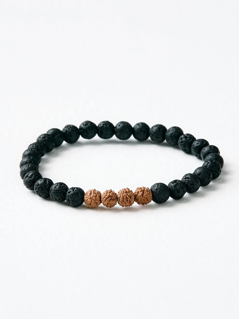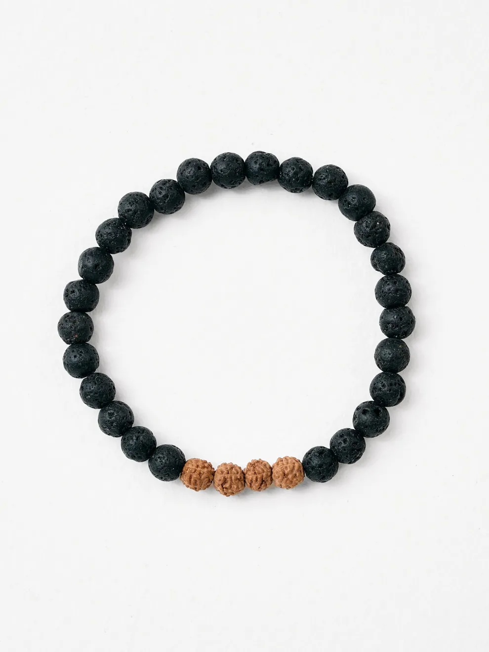 Lava stone is worn as a reminder of strength and clarity. The porous black rock is associated with emotional grounding and is connected with the root chakra.