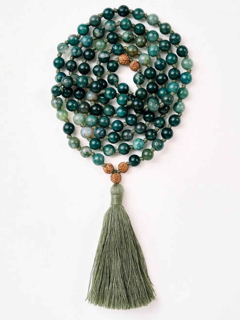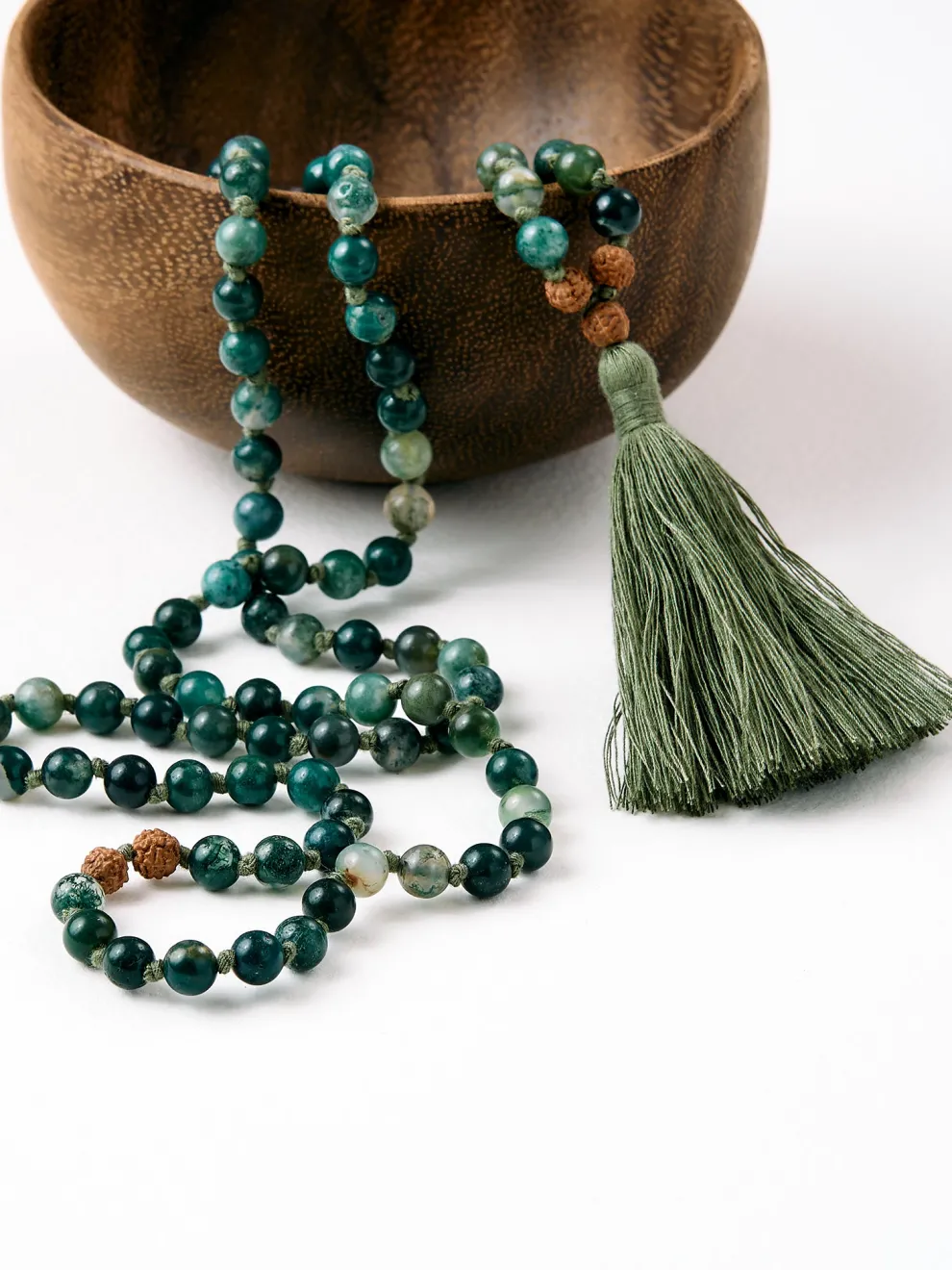 - Malas are hand-knotted between each bead while bracelets are hand-strung on elastic thread