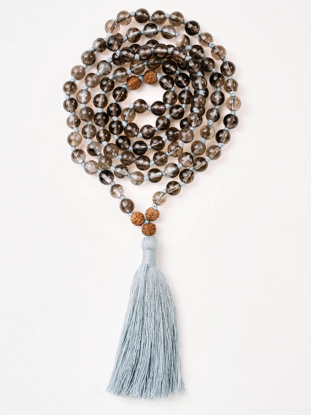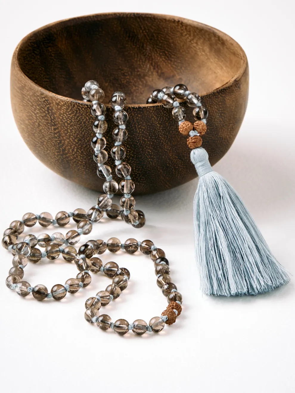 - Malas are hand-knotted between each bead while bracelets are hand-strung on elastic thread