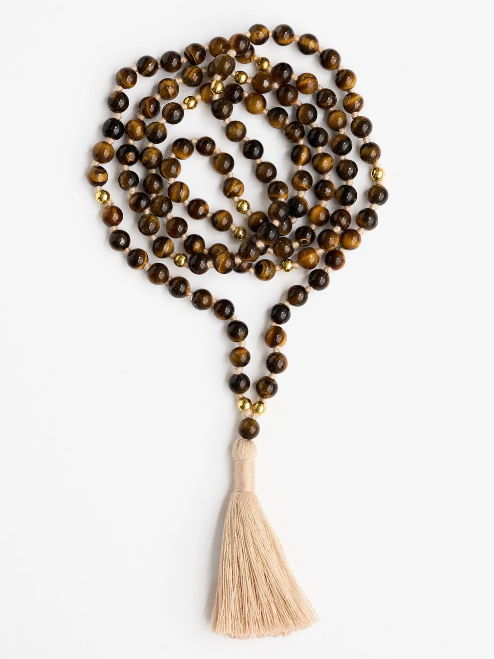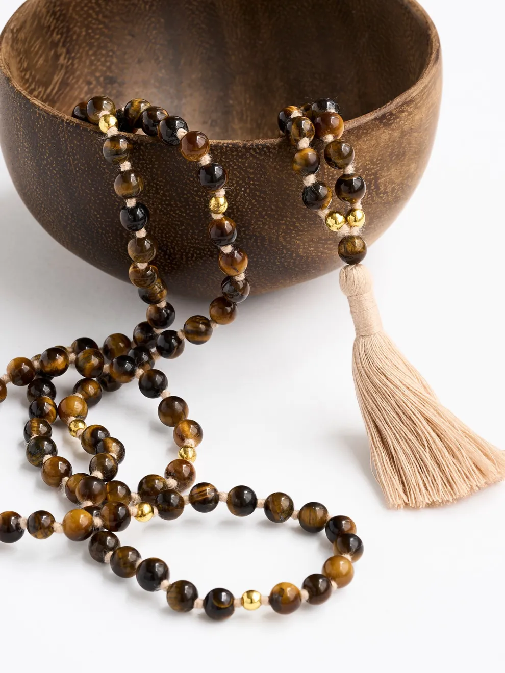 - Malas are hand-knotted between each bead while bracelets are hand-strung on elastic thread