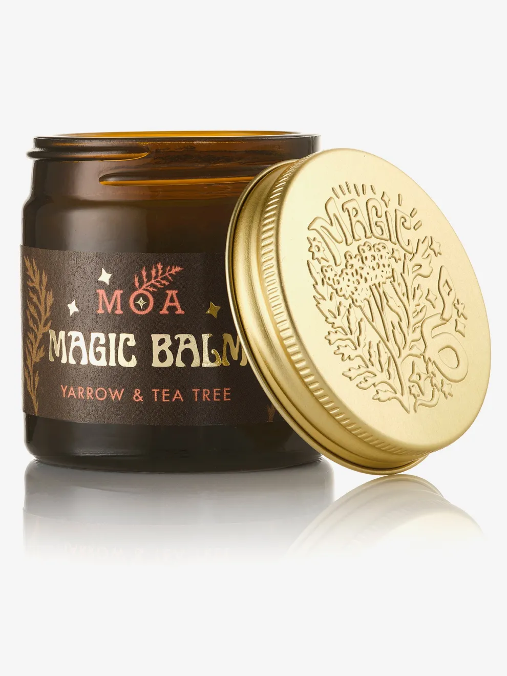 Magic Balm is an organic, calming multi-purpose balm, made with yarrow, an ancient healing herb, along with tea tree oil, nature’s powerful antiseptic.