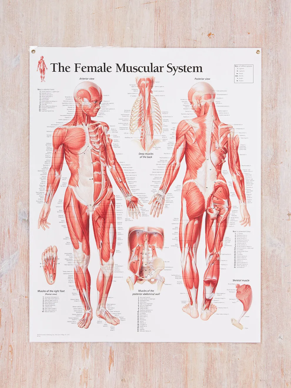 High quality anatomical reference chart, laminated with eyelets for wall mounting.
