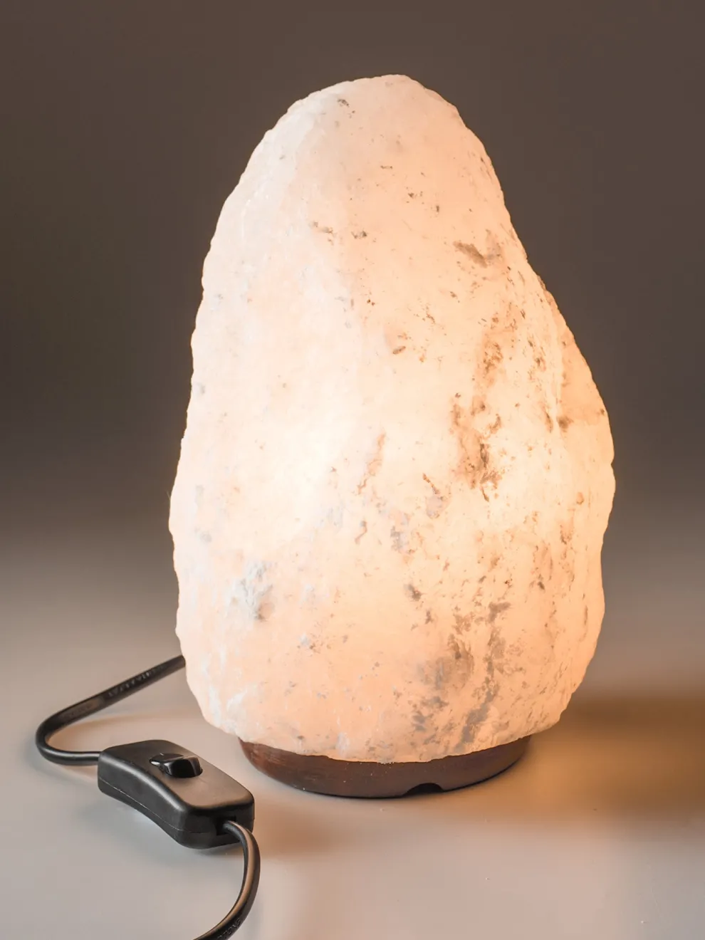 Includes: Salt Lamp, Wooden Base, 15W E14 Bulb, 1m cord with On/Off switch and UK power plug. Assembly instructions included.