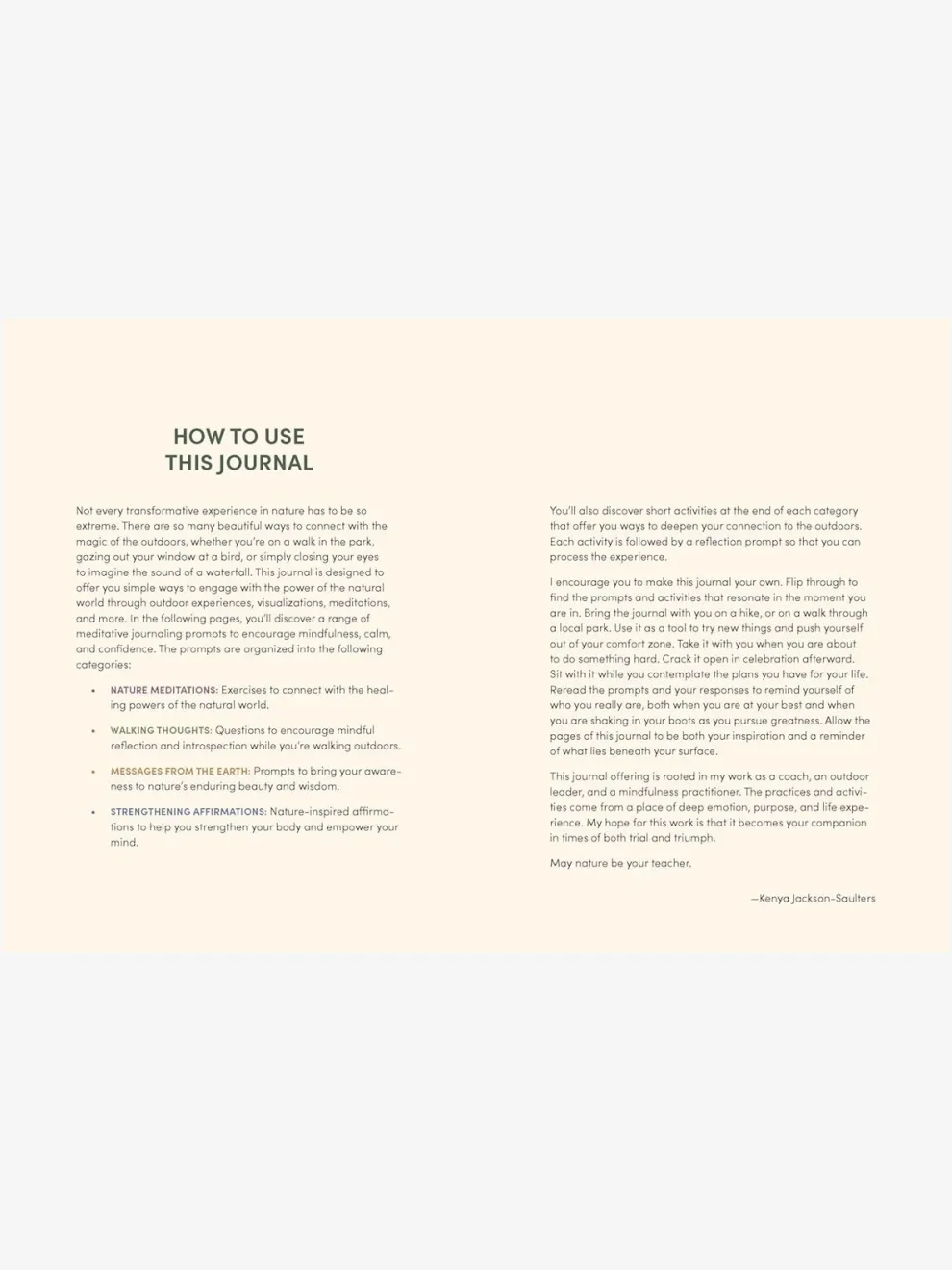 From the author of the popularNature Meditations Deck,this guided journal makes it easy to tap into the restorative power of nature. Within these pages are simple mindfulness practices, reflection prompts, and guided activities organized into four sections:- Nature meditations – Walking thoughts – Messages from the earth – Strengthening affirmations
