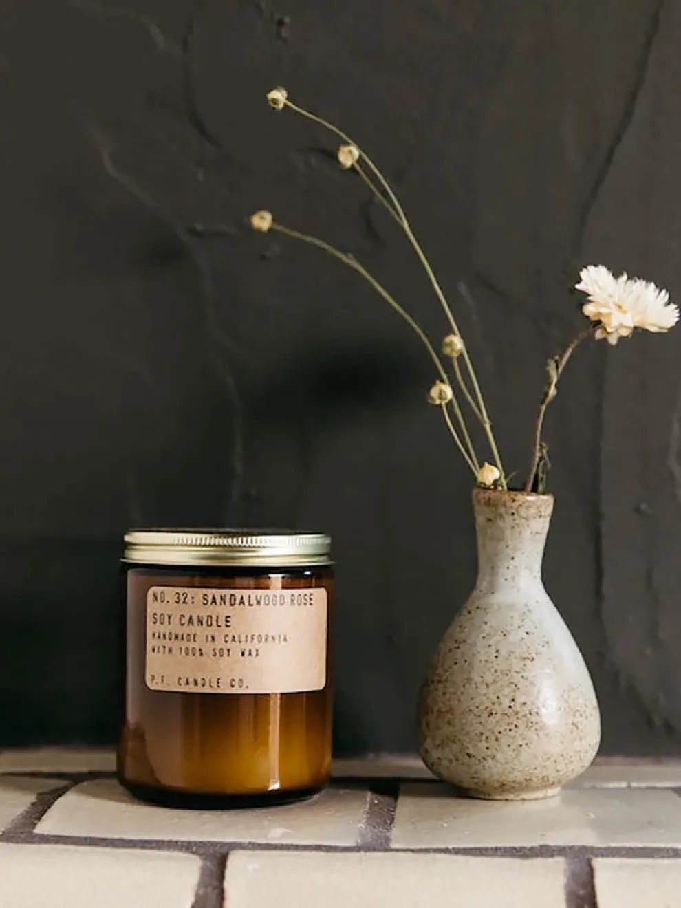 These beautiful soy candles from P.F. Candle Co. are hand-poured into apothecary inspired amber jars in their studio in Los Angeles.