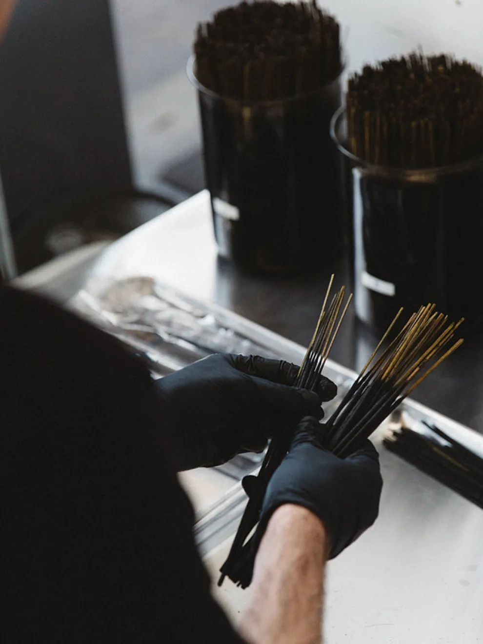 P.F. Candle Co. incense sticks are hand-dipped and packed in their Los Angeles studio.