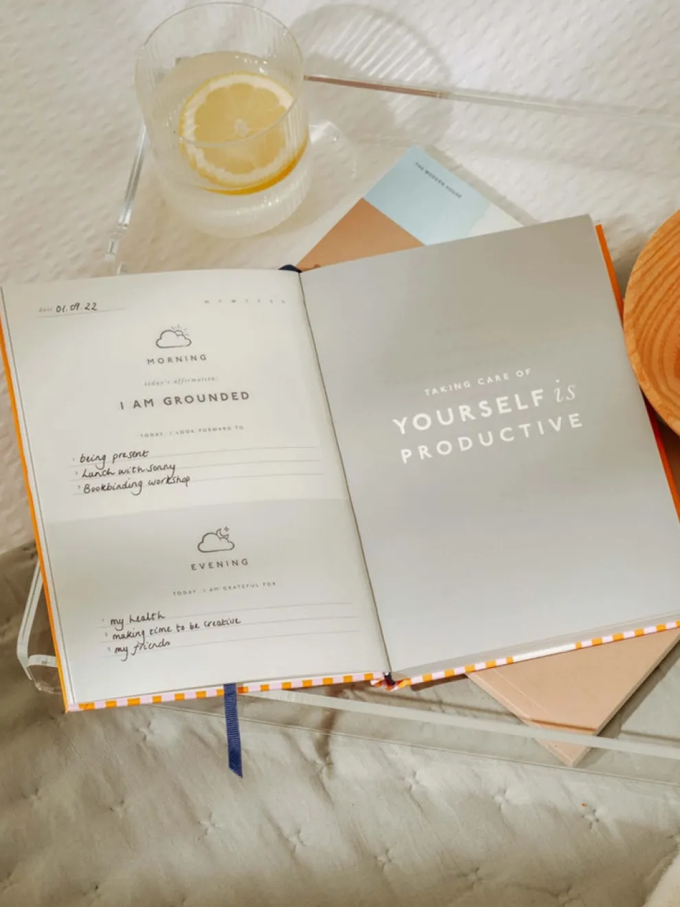 - Morning and evening prompts to use whenever you need a mindful moment