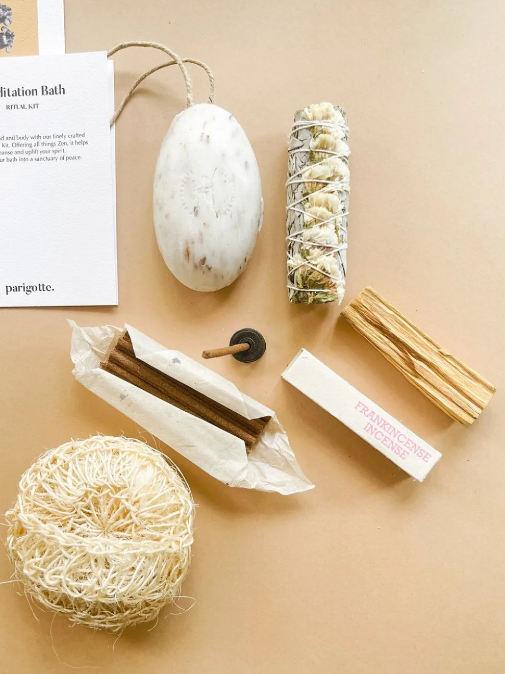 Relax your mind and your body with this finely crafted Bath and Meditation set from Parigotte. This selection offers all things Zen: