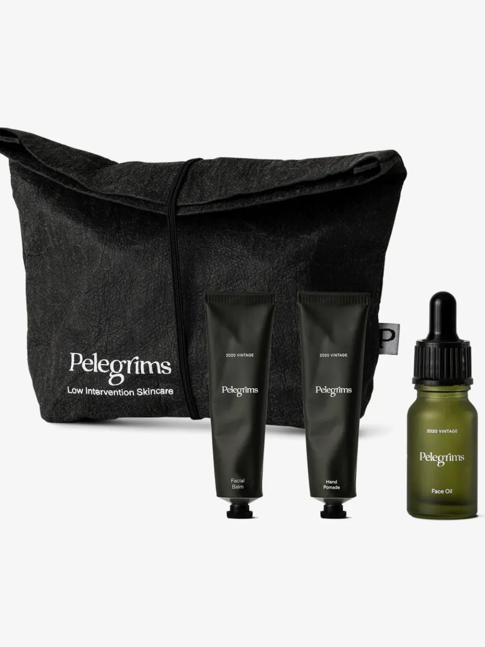 A selection of Pelegrim’s products in travel sizes, perfect for sampling their range or taking with you on adventures.