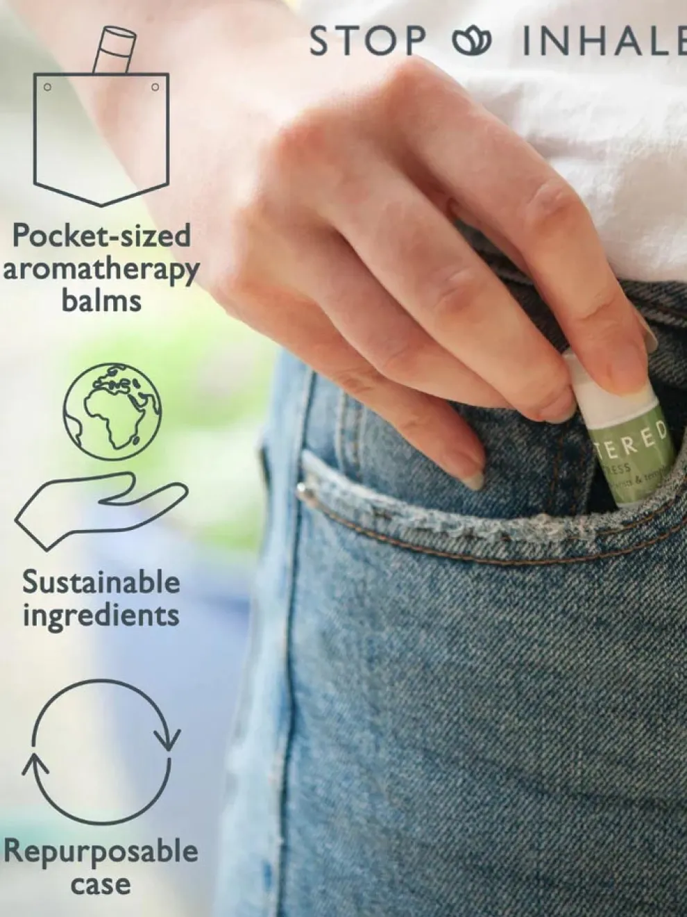 Each 1.5g mess-free mini balm contains up to 25 essential oils, which deliver a unique 100% natural fragrance and aromatherapeutic benefit. Each balm can be used individually to target a specific need or together, as a personal mood and lifestyle support ‘tool kit’. Leak-free design makes it perfect for your pocket or bag.