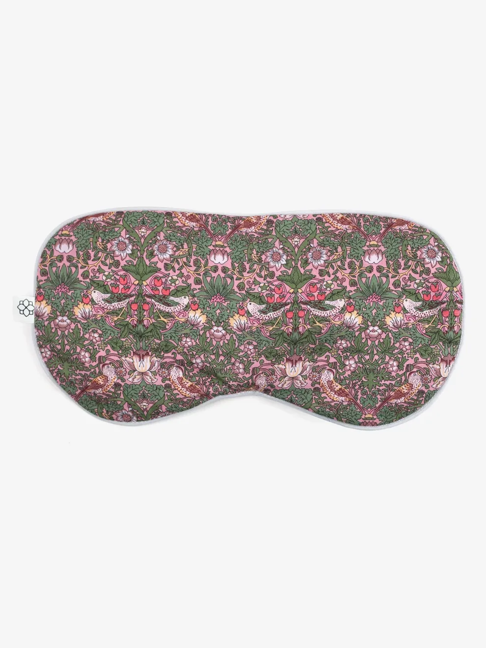The removable outer cover is washable and made from beautiful and iconic Liberty London Tana Lawn cotton fabric. A grey drawstring bag is included for storage and travel. The eye mask can also be used as a cold compress – place it in the freezer in a sealed plastic bag to chill 30-60 minutes before use. It can also be warmed in the microwave for 15 seconds to help soothe tired eyes. Bliss!