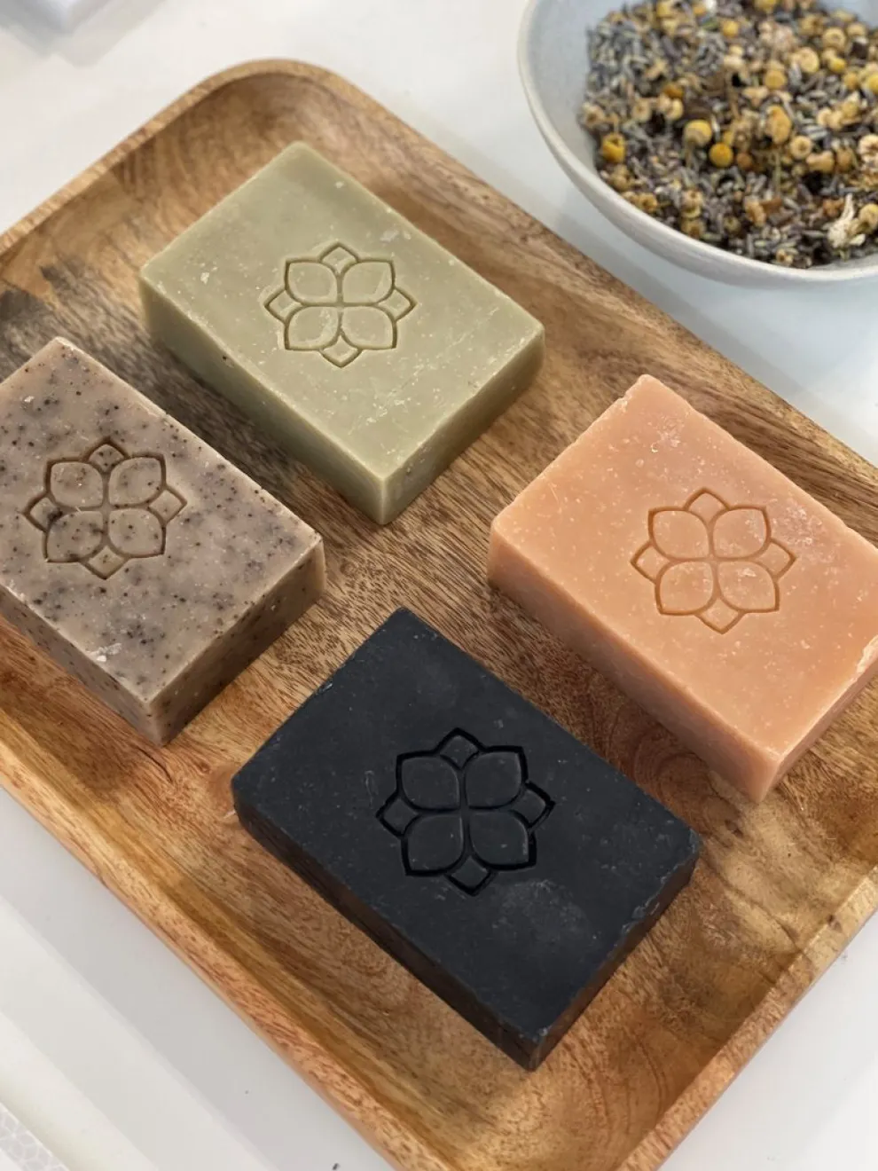 - Natural mix of Olive, Coconut and sustainable Palm Oil, Shea Butter, Pink Clay