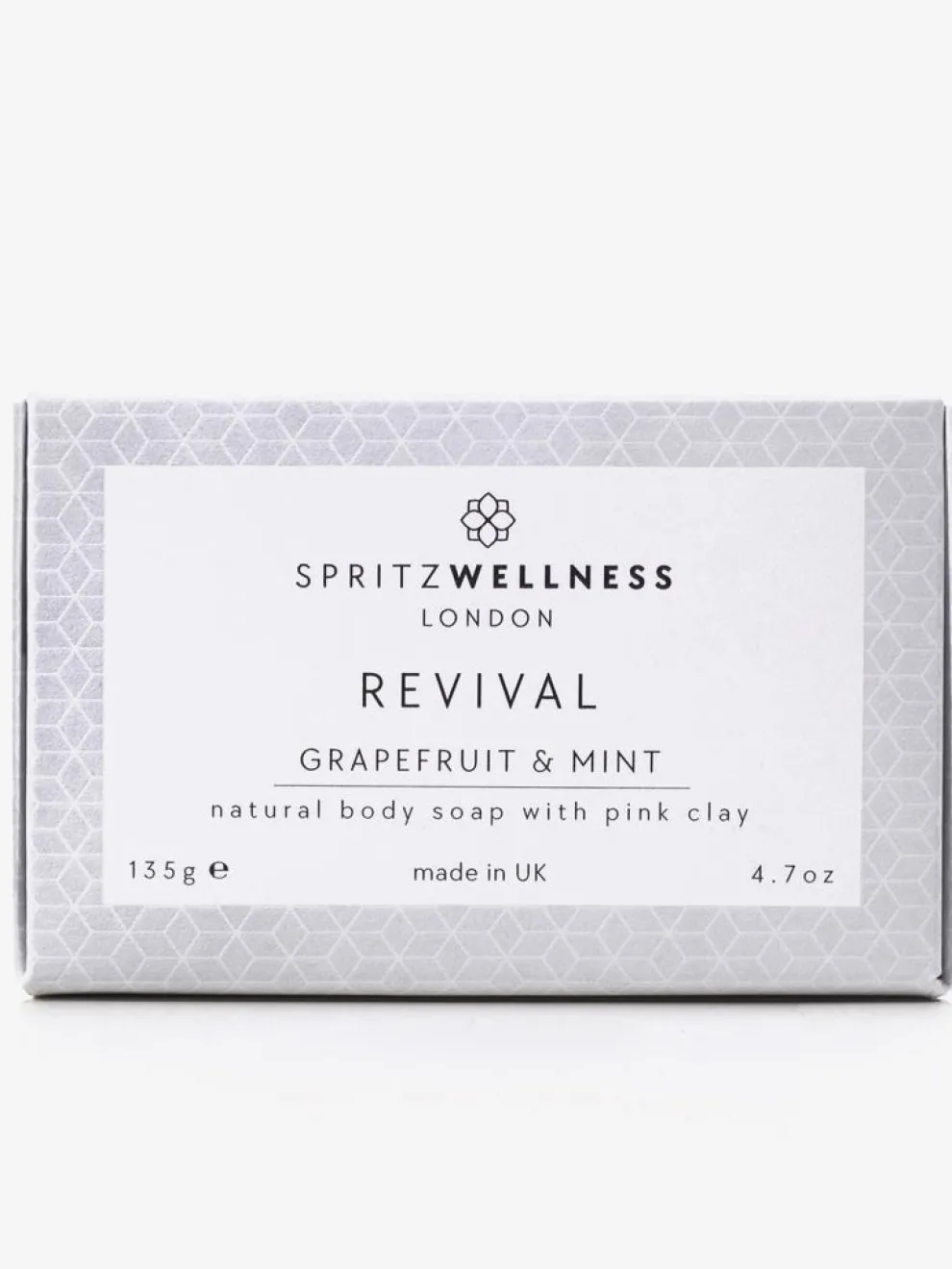Revive your body and mind with this Spritz Wellness natural soap enriched with shea butter and pink clay leaving skin soft and smooth. Revitalise the senses with the stimulating scents of grapefruit and mint.