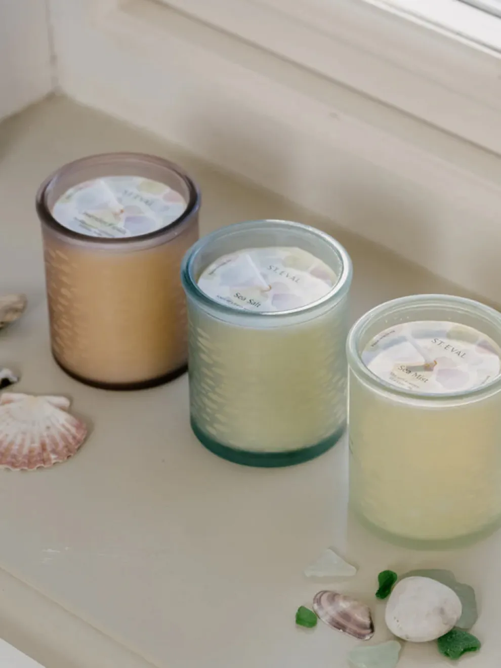 Capture the essence of coastal treasures discovered along sandy shores, and bring the soothing colours and calming scents of the ocean into your home. Nestled in frosted glass reminiscent of beachcomber finds, these St Eval candles infuse your space with the inland blossoms of lavender fields.