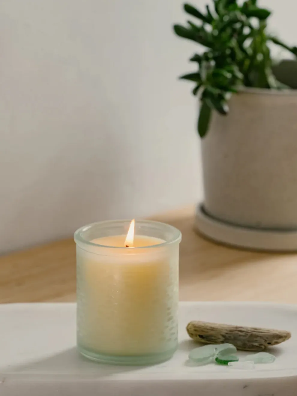 Capture the essence of coastal treasures discovered along sandy shores, and bring the soothing colours and calming scents of the ocean into your home. Nestled in frosted glass reminiscent of beachcomber finds, these St Eval candles infuse your space with the salty breeze of ocean air and the soothing whispers of rolling waves.