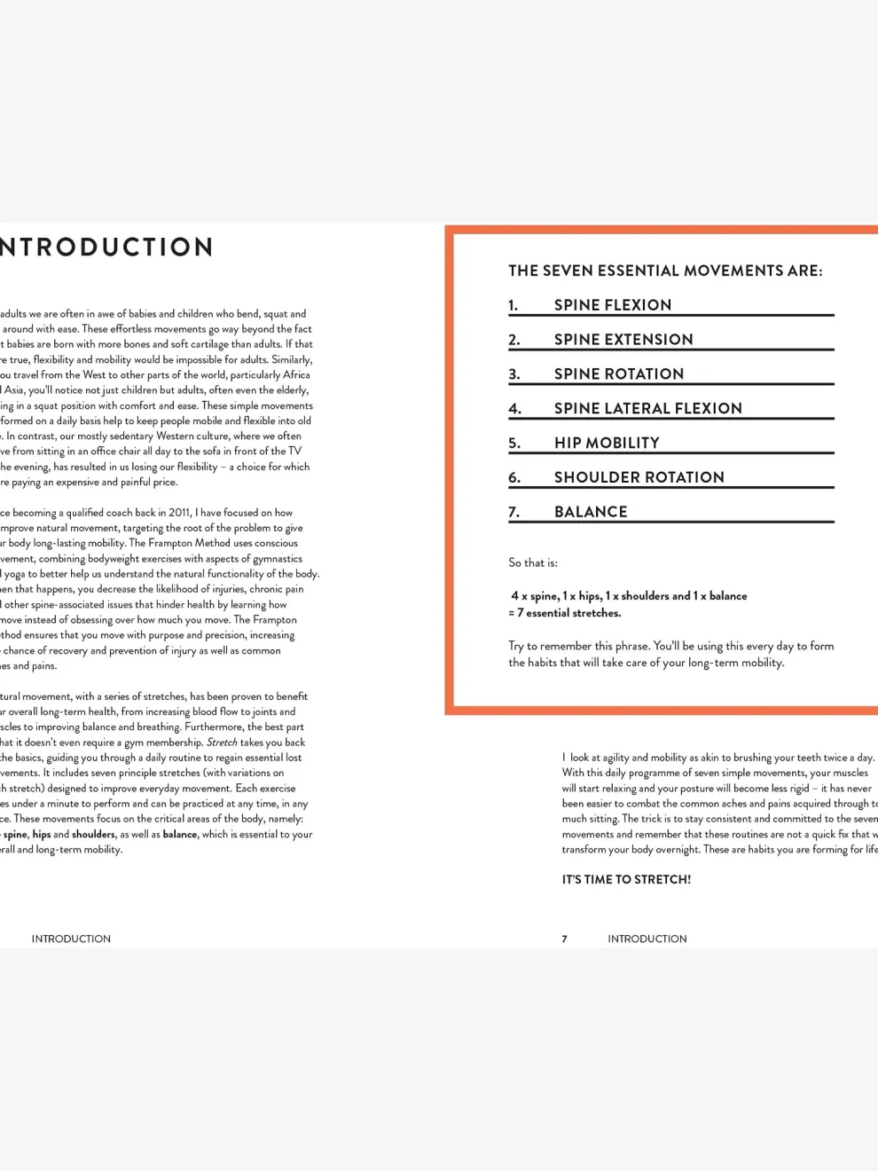 InSTRETCH, professional movement coach Roger Frampton is here to tell you that flexibility and mobility should really be likened to brushing your teeth daily, on waking up and before you sleep. Combining light bodyweight exercises, gentle twists and elongating stretches,STRETCHis a daily programme of seven essential movements (with three variations of each) to help combat the key areas of the body that have lost functionality, improve overall wellbeing and fight the negative effects of a sedentary lifestyle. All without a gym membership.