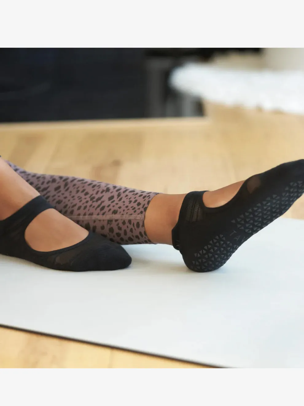 - Sheer knit and high density grip sole