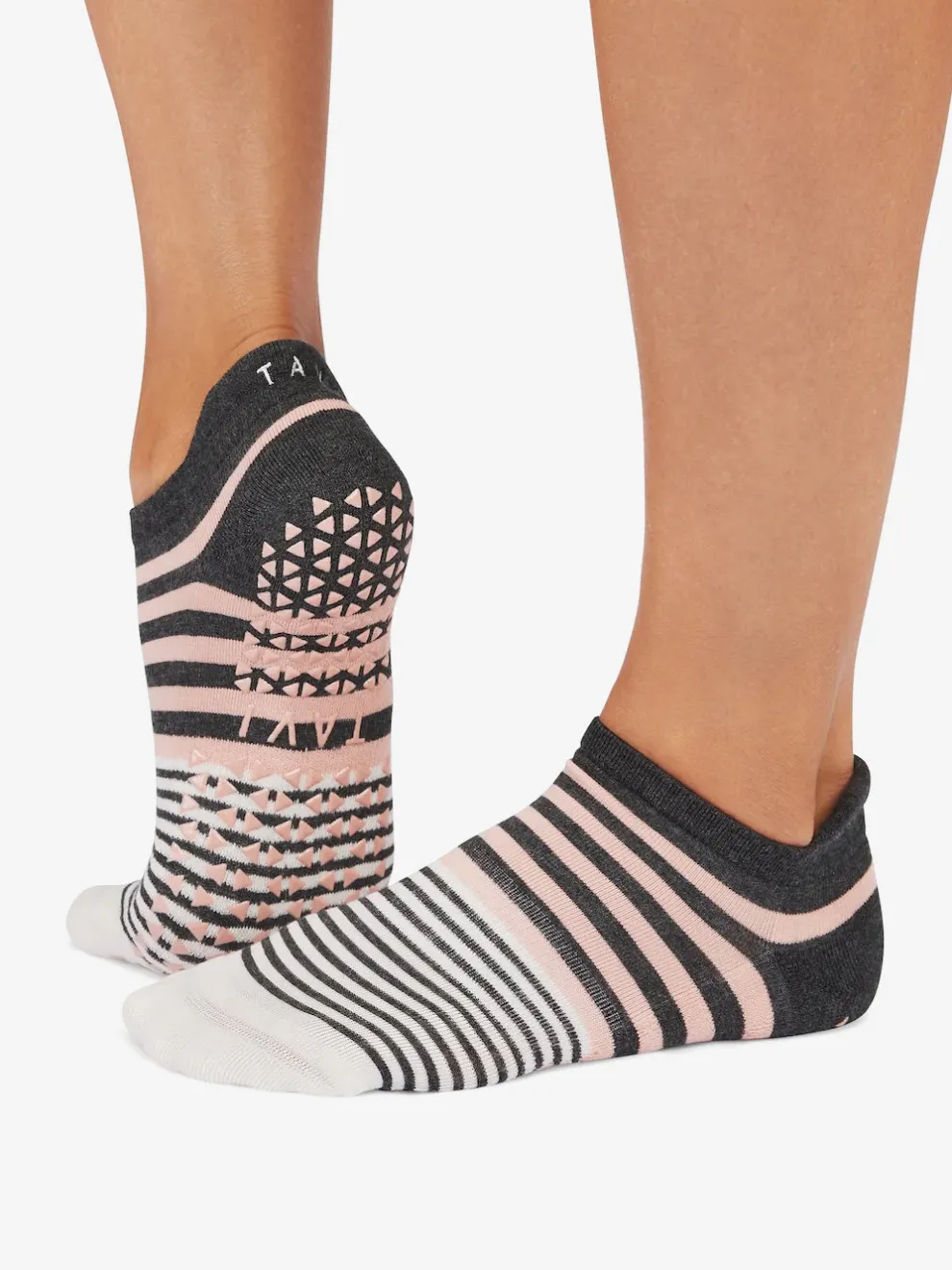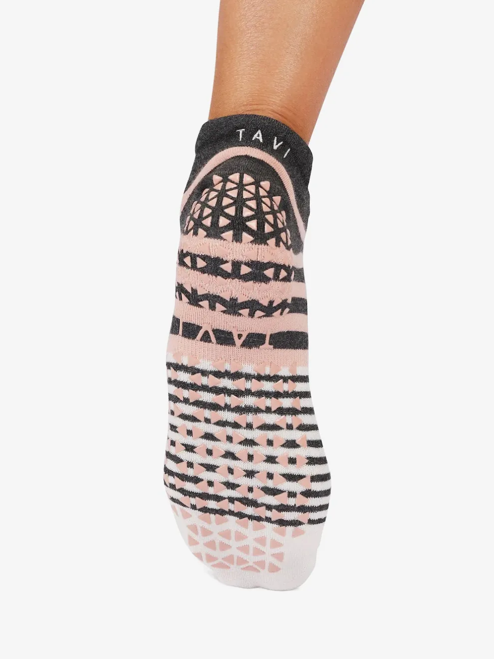 Savvy’s low rise design hugs below the ankle while Tavi’s stellar grip sock pattern safely moves you through your barre, Pilates, and yoga classes.Aclassic silhouette that never goes out of style.