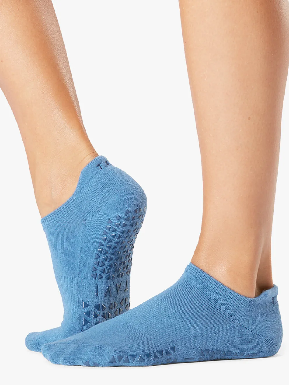 Savvy’s low rise design hugs below the ankle while Tavi’s stellar grip sock pattern safely moves you through your barre, Pilates, and yoga classes.Aclassic silhouette that never goes out of style.