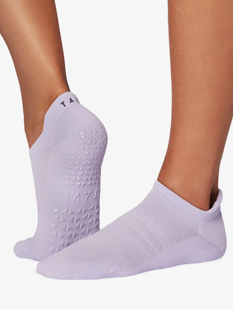 Savvy’s low rise design hugs below the ankle while Tavi’s stellar grip sock pattern safely moves you through your barre, Pilates, and yoga classes.Aclassic silhouette that never goes out of style.