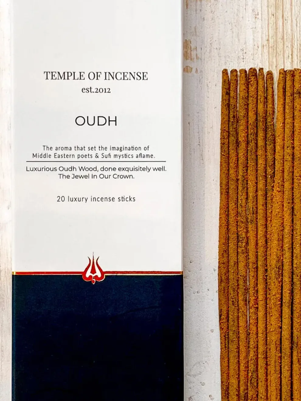 Each box contains 20 luxury Oudh incense sticks with a minimum burn time of 45 minutes per stick.
