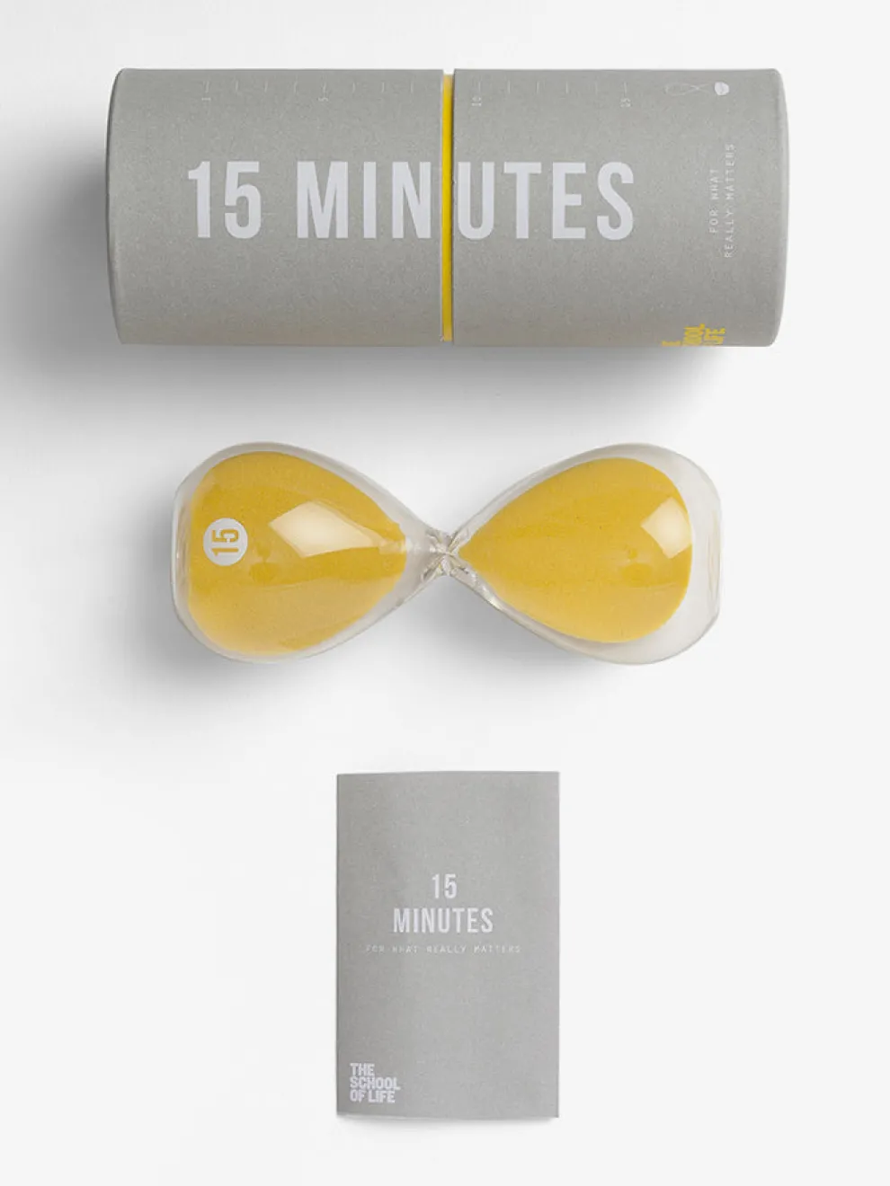 The 15 minute glass doesn’t tell you what exactly to do with its allotted time. It just demarcates a very modest and manageable period – then it creates a floor beneath which it suggests we don’t fall. It delicately shames us into doing a minimum of what really counts. It is a gauntlet thrown down to our better selves.