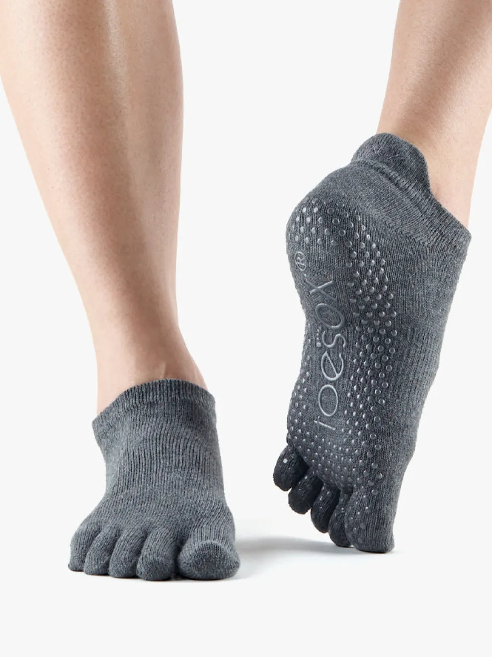 Low rise toe socks hug your foot below the ankle.