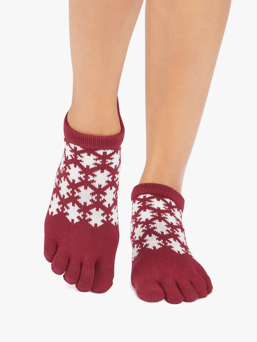 Low rise toe socks hug your foot below the ankle. Keep feet and toes warm and cosy in these full toe socks. It’s like you’re barefoot…but even better.
