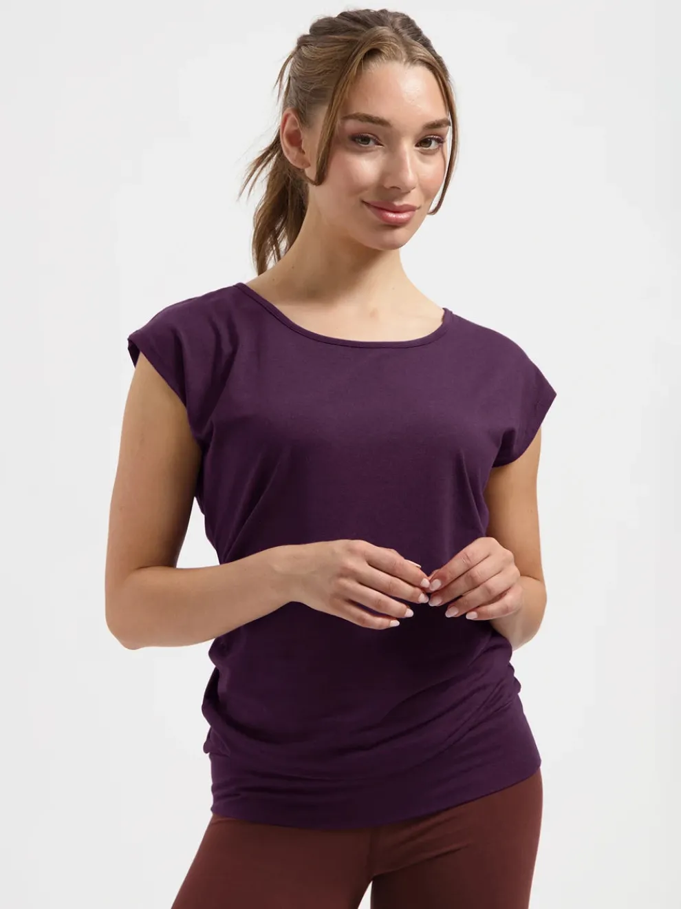 The Asana Tee is not perfect just for yoga but for any occasion.Comfortable fitwith waistband on the hem so you’ll never need to pull the top down.