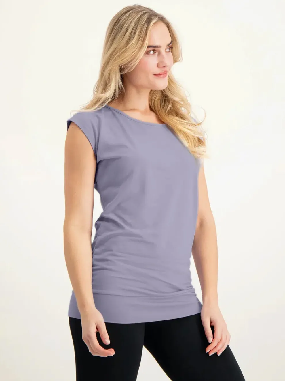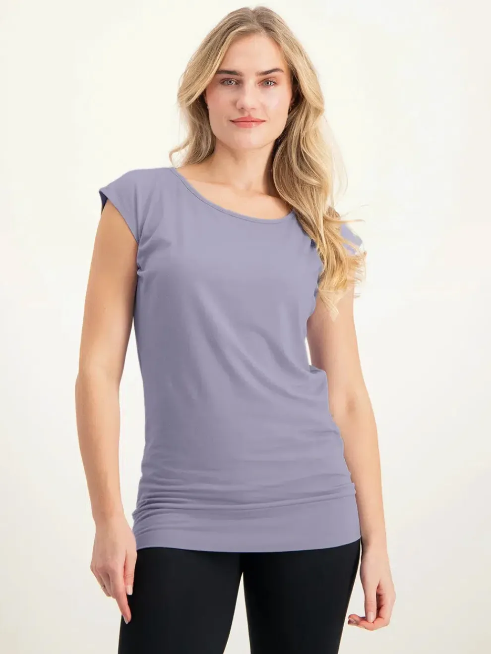 The Asana Tee is perfect for yogaandmany other occasions.It offers a comfortable fitwithawaistband on the hem so you’ll never need to pull the top down.