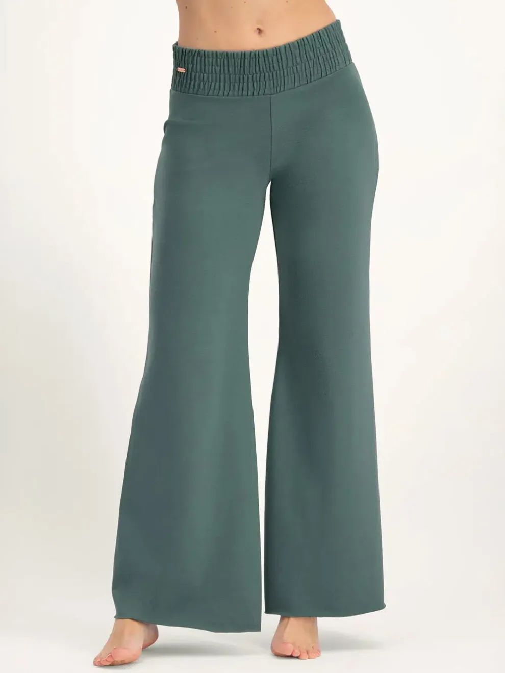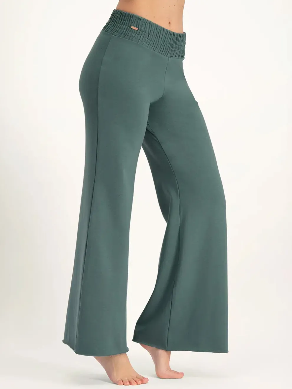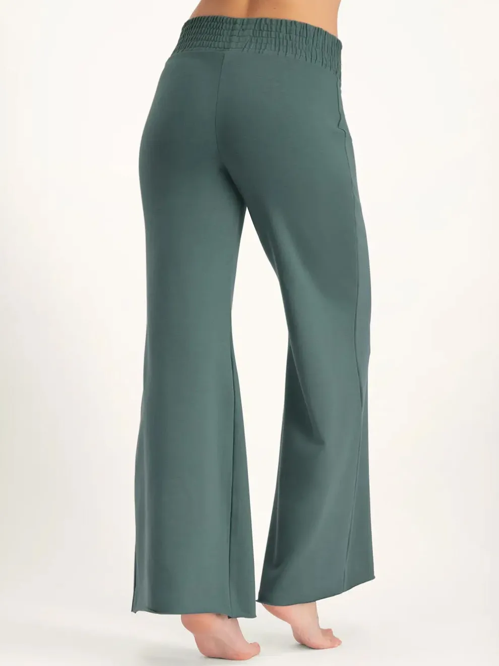 These yoga pants are made of fine supple bamboo and organic cotton blend. In addition, the wide waistband is smocked, giving it a very comfortable feel.Ideal forthe less dynamic practices of yin, hatha, restorative, meditation and slow flow.