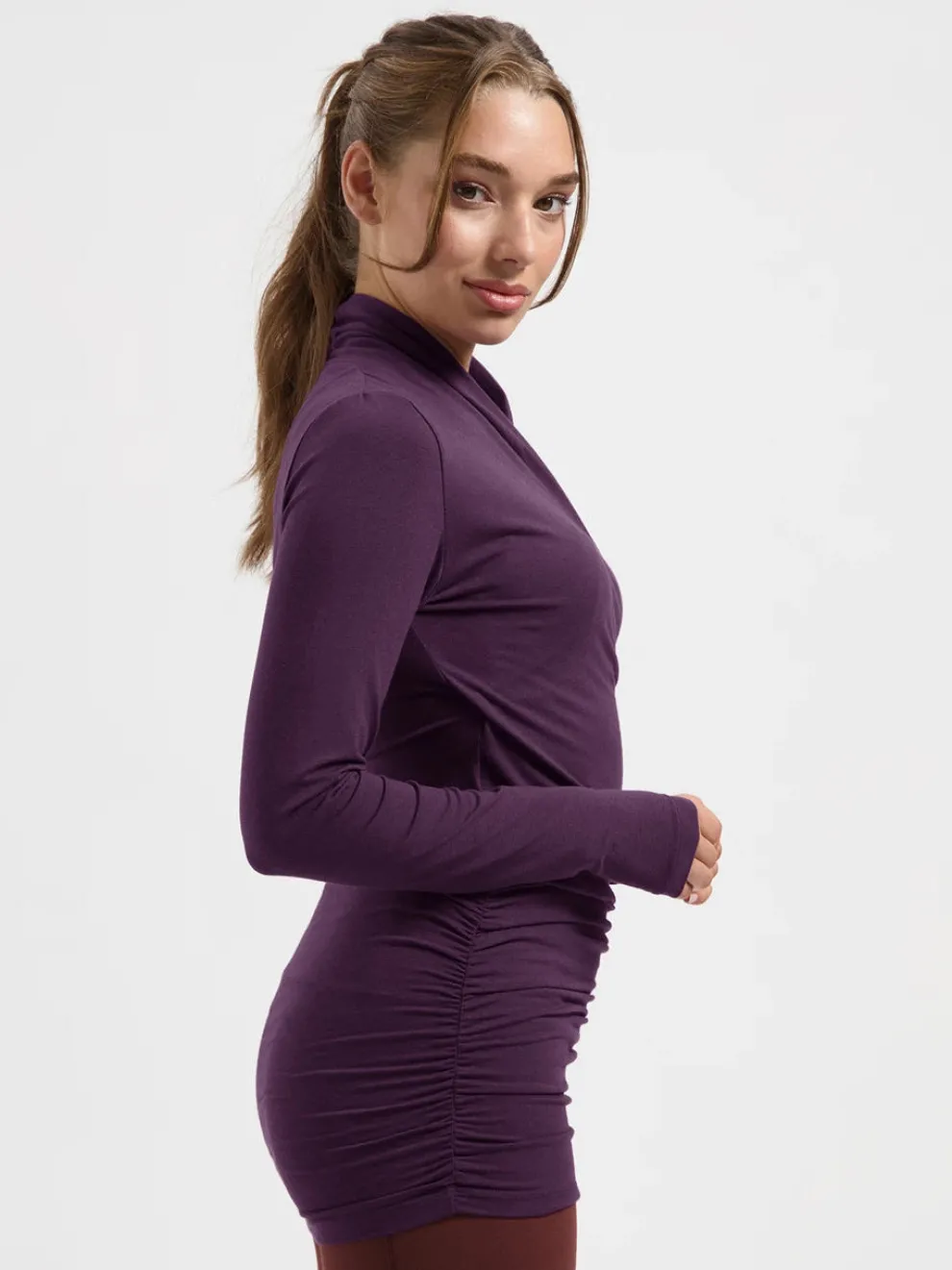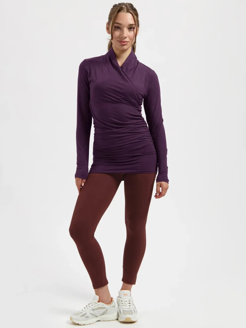The Good Karma long sleeve yoga top is a comfortable and practical yoga top that you can adjust to your own preferences thanks to the double layered neckline. The fabric also creates a pleated look which provides extra space for larger cup sizes.