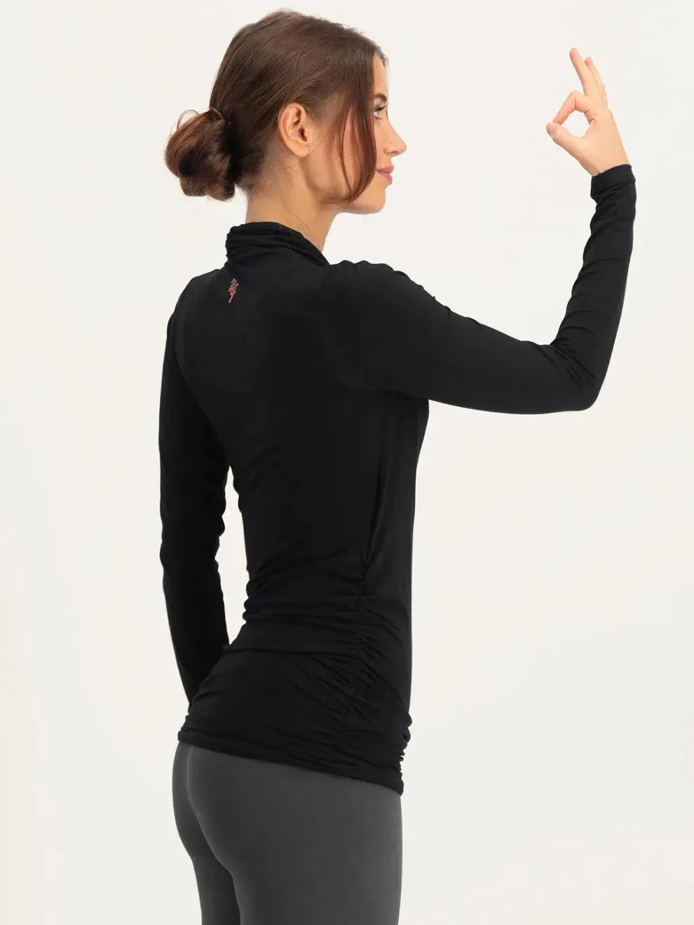 The Good Karma long sleeve yoga top is a comfortable and practical yoga top that you can adjust to your own preferences thanks to the double layered neckline. The fabric also creates a pleated look which provides extra space for larger cup sizes.