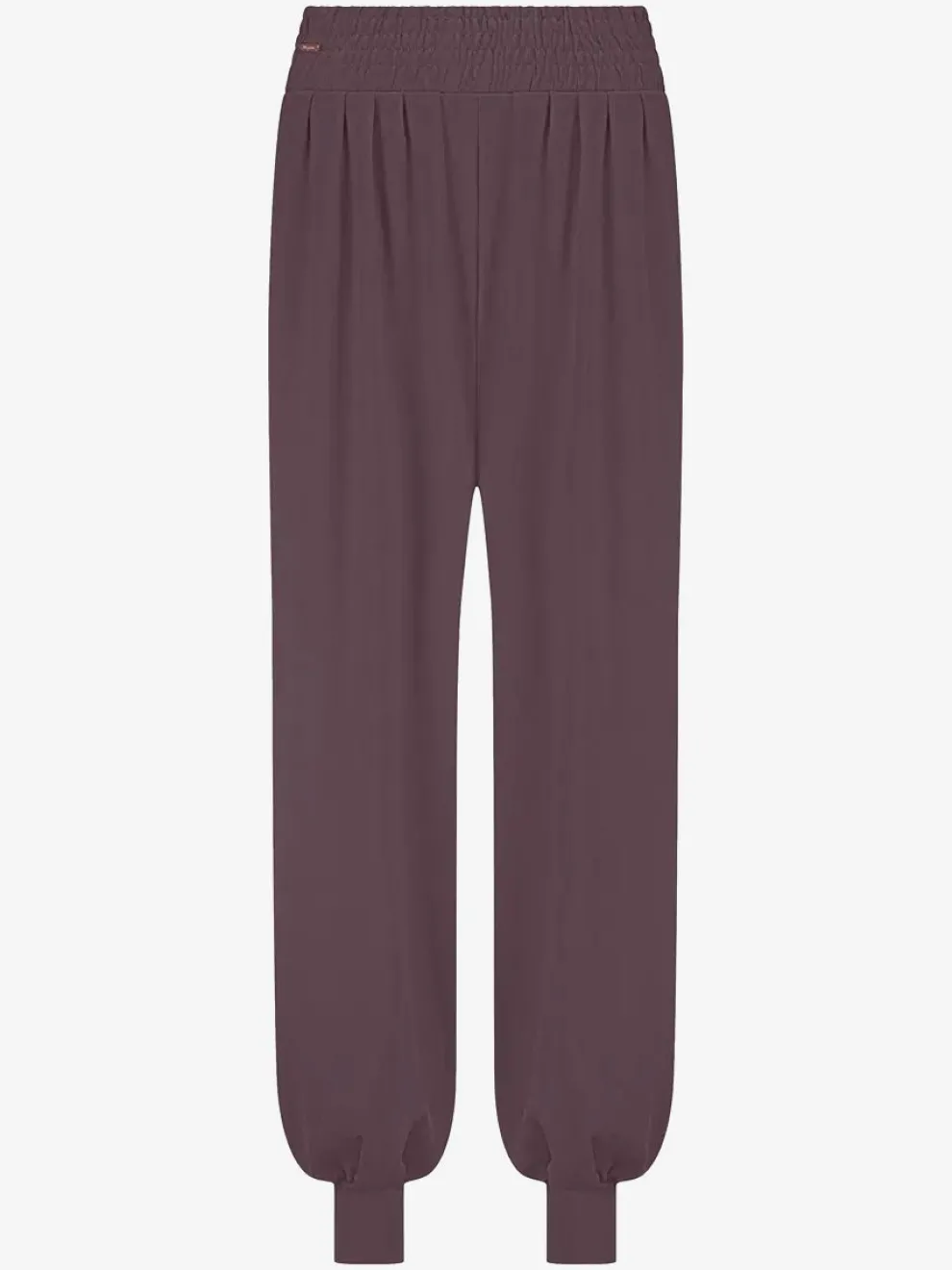 The short ankle cuffs and smocked waistband keep the wide yoga pants in place.