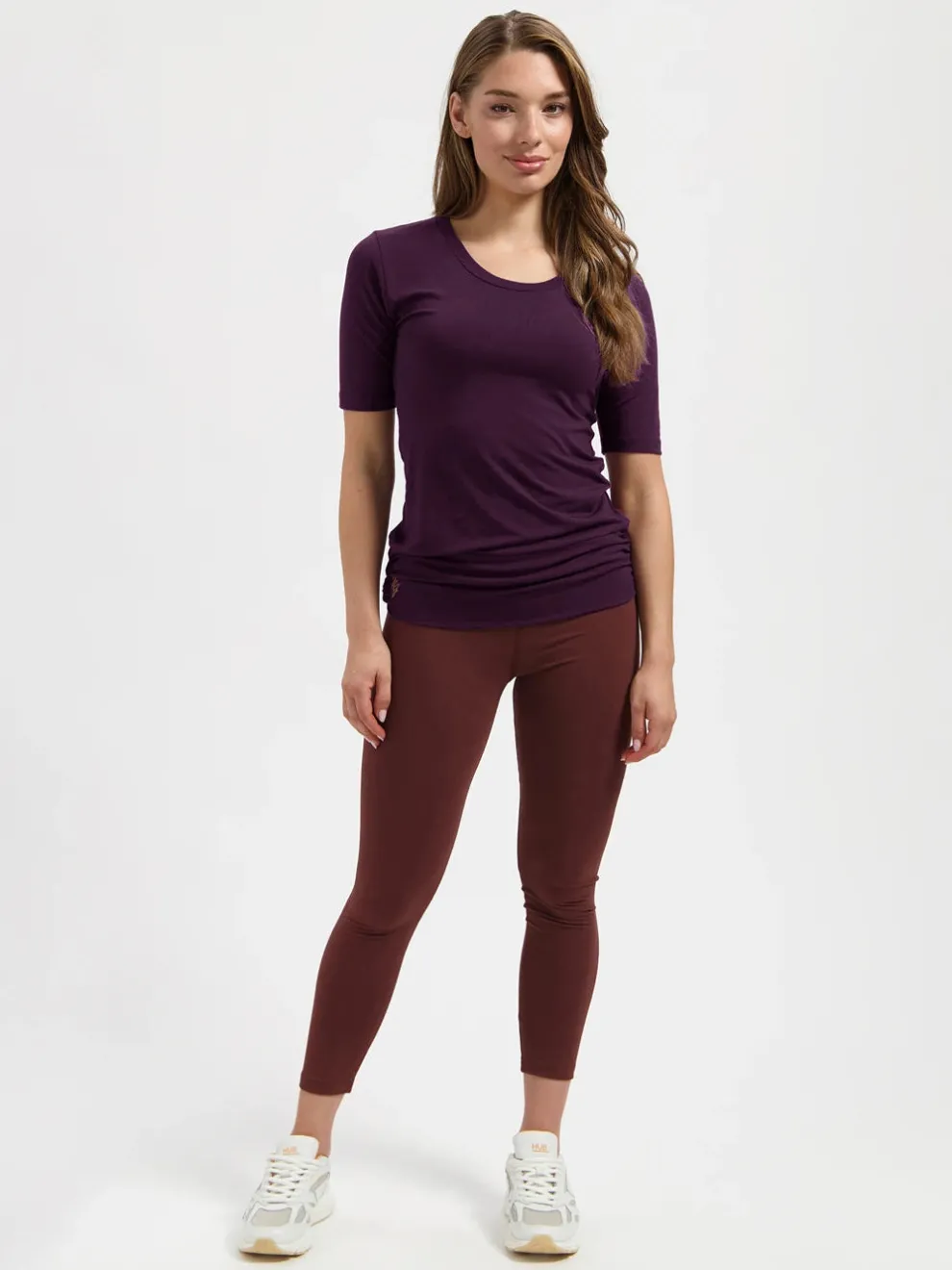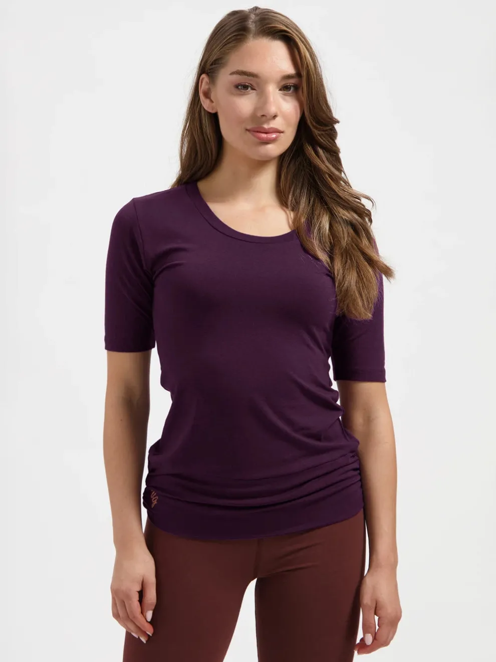 Enhance your yoga practice with the Urban Goddess Kami yoga t-shirt. Made from a blend of sustainable bamboo and certified organic cotton, this comfortable shirt stays in place during even the most intense and dynamic yoga & Pilates sessions. Naturally antibacterial and moisture-wicking, it’s perfect for all your yoga classes.