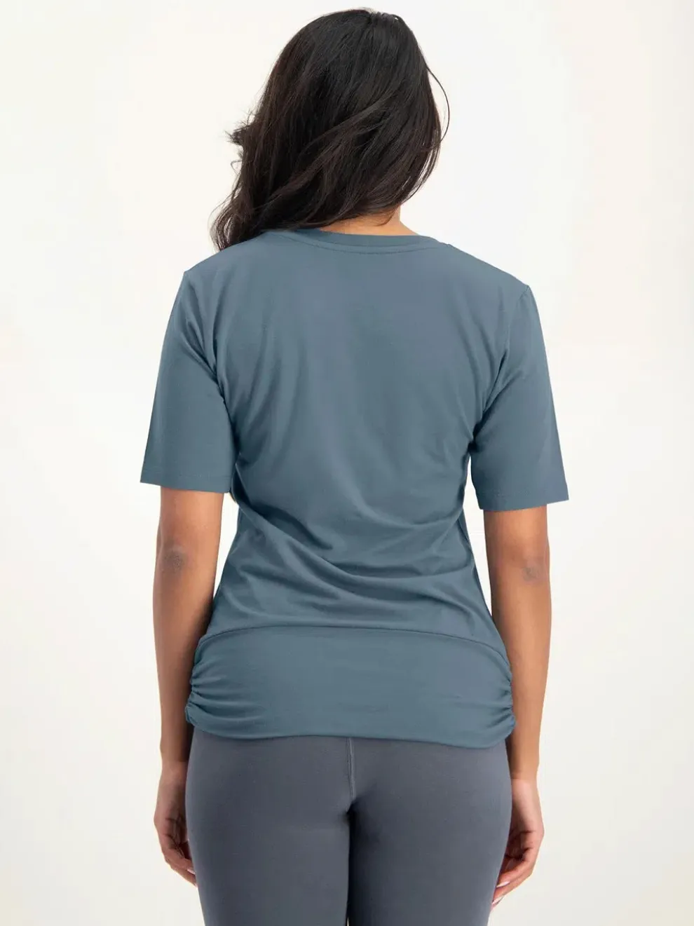 Yoga clothing should feel good and soft to wear. This comfortable yoga T-shirt is made from fine, sustainable materials. The fabric blend includes bamboo and certified organic cotton. Additionally, the material is antibacterial and easily absorbs moisture.