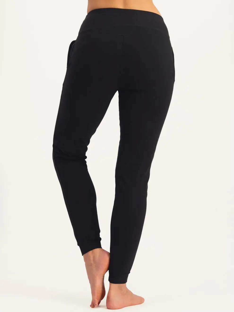 These pants feature a single elastic waistband, small ankle cuffs and a slightly lowered crotch, lettingyou flow through your asanas with ease. Inspired by modern harem pants but without the overly low crotch, these organic yoga pants give you the freedom to move smoothly and gracefully.