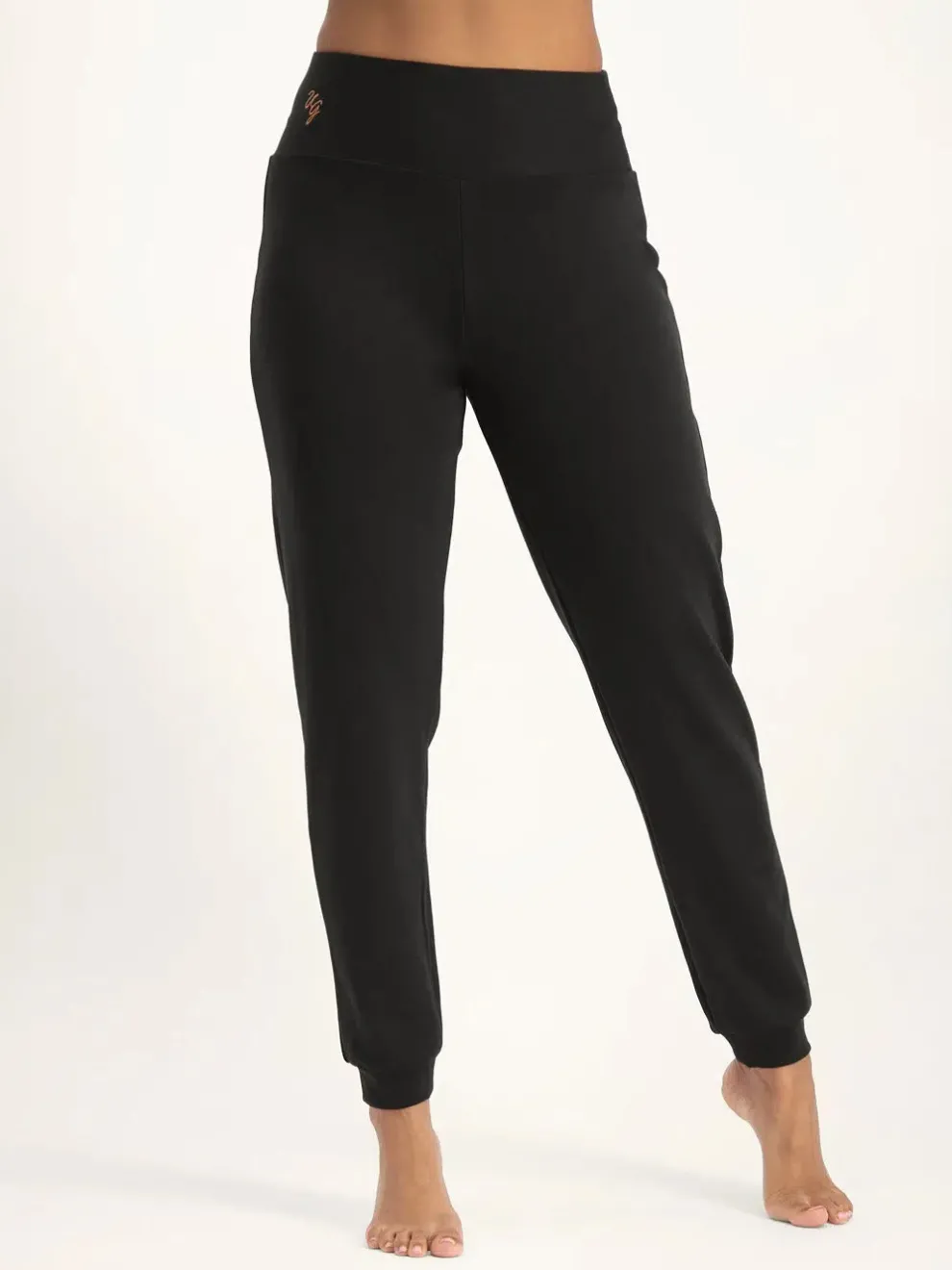 The Ojas yoga pants are ideal for vinyasa, kundalini or a hatha flow or slow flow yoga class. The crotch is slightly lowered, but you can quietly do all asanas with them. Ojas resemble modern harem trousers, without an overly low crotch.
