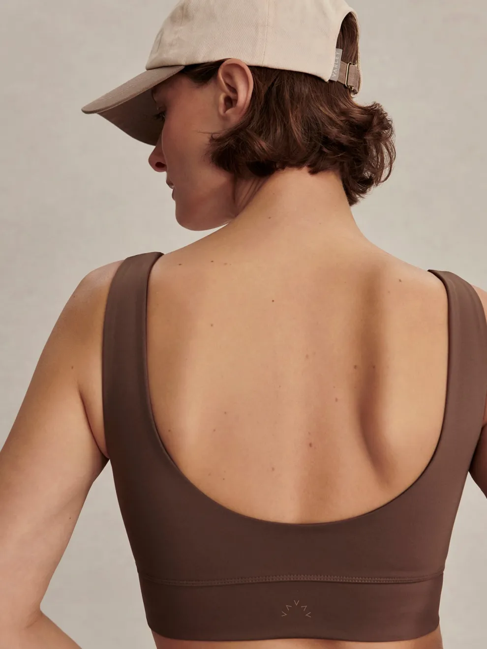 Smooth, sculpting, and compressive, the Cori bra with removable cups is made in Varley’s innovative Assure fabric.