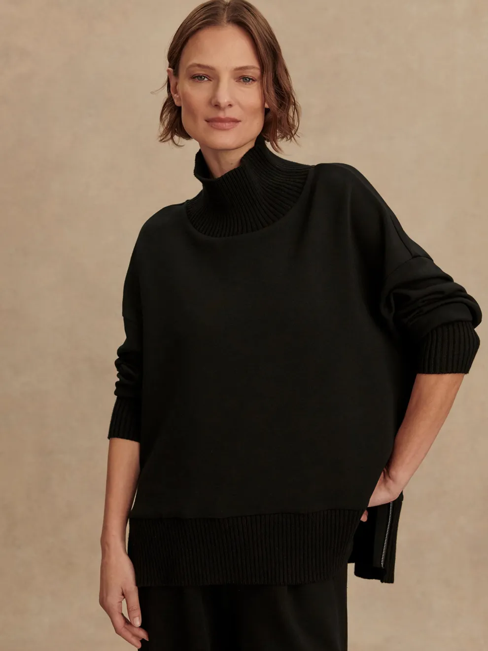 This essential sweatshirt boasts an oversized fit and modern high-neck design. Complete with knitted cuffs, neck, and hem, it includes deep side splits for enhanced movement and style.