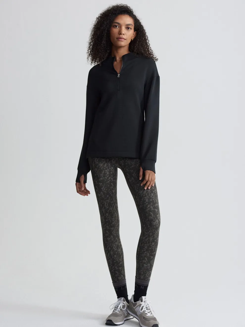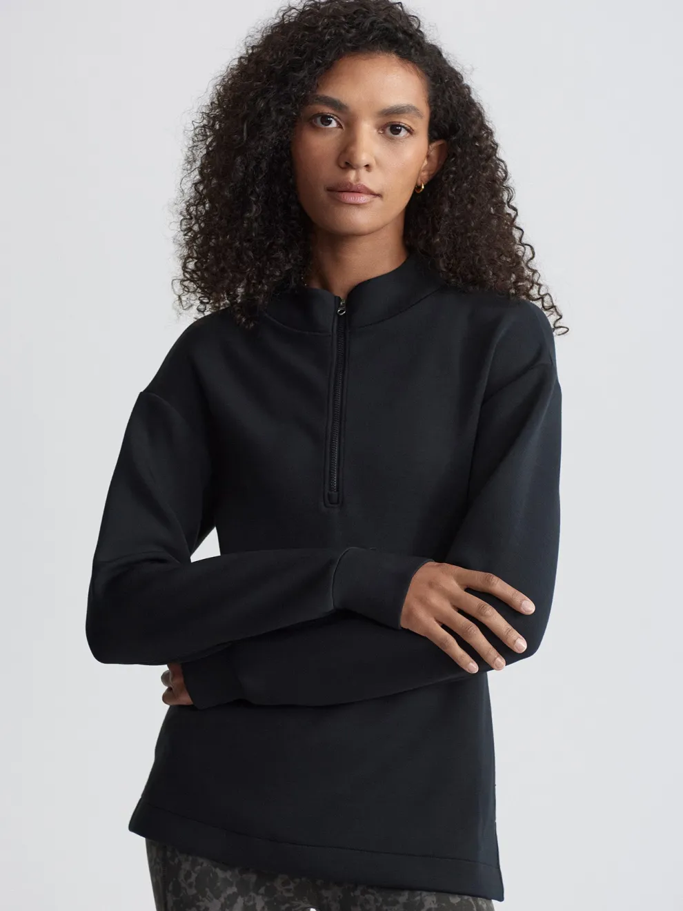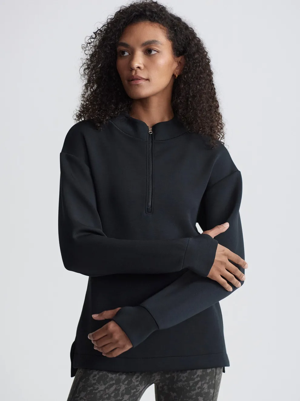 The Cleo midlayer is made in Varley’s Lightweight Spacer fabric with a dropped back hem for extra coverage. Side seam pockets and thumbholes give this elegant, active pullover a functional edge.
