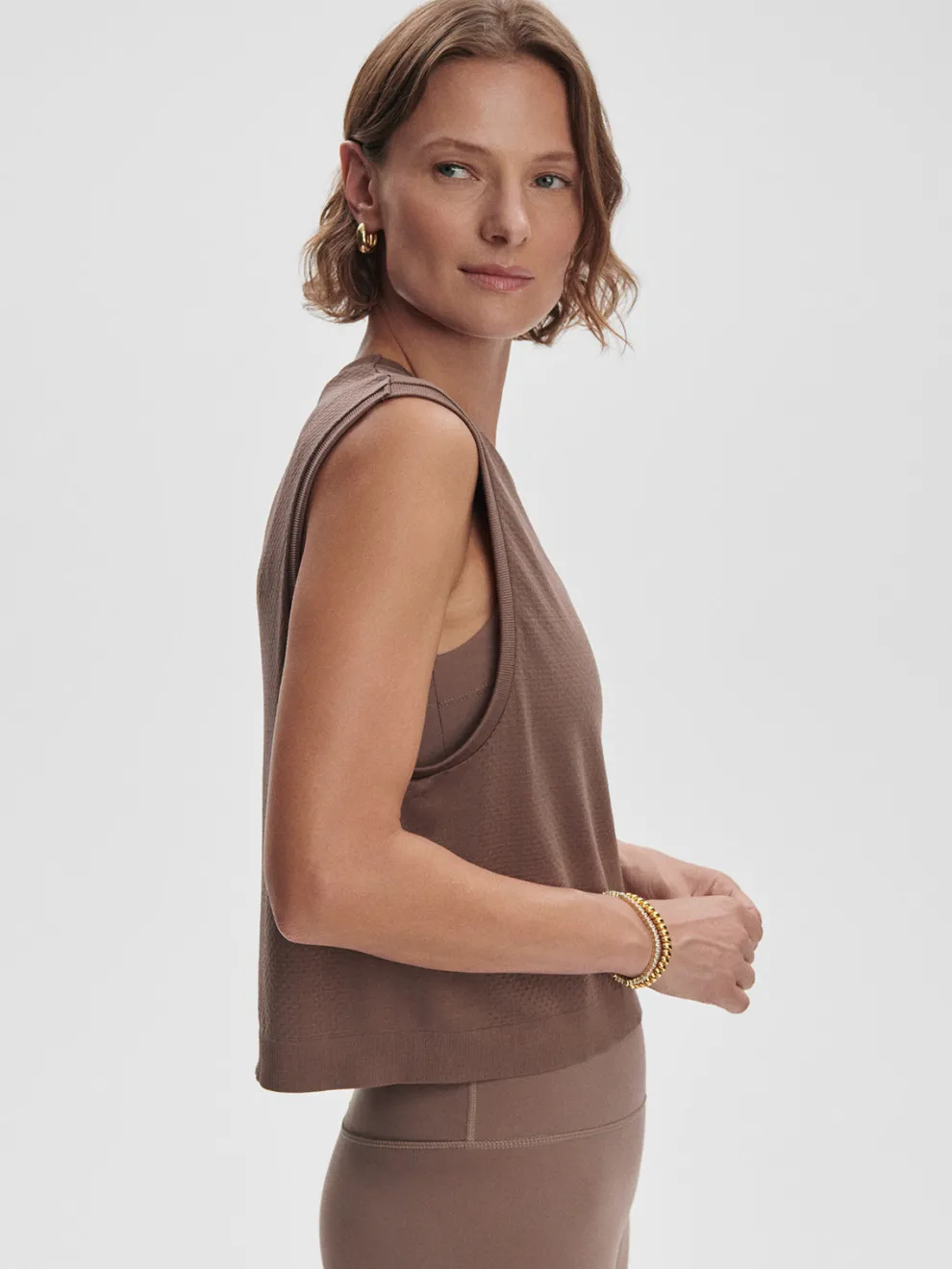 Cut to a versatile cropped silhouette, the Page tank top is produced in Varley’ssoft and supportive Seamless fabric for all-day comfort. With dropped armholes and subtle textured perforation, the breathable, lightweight design is ideal for every type of workout.