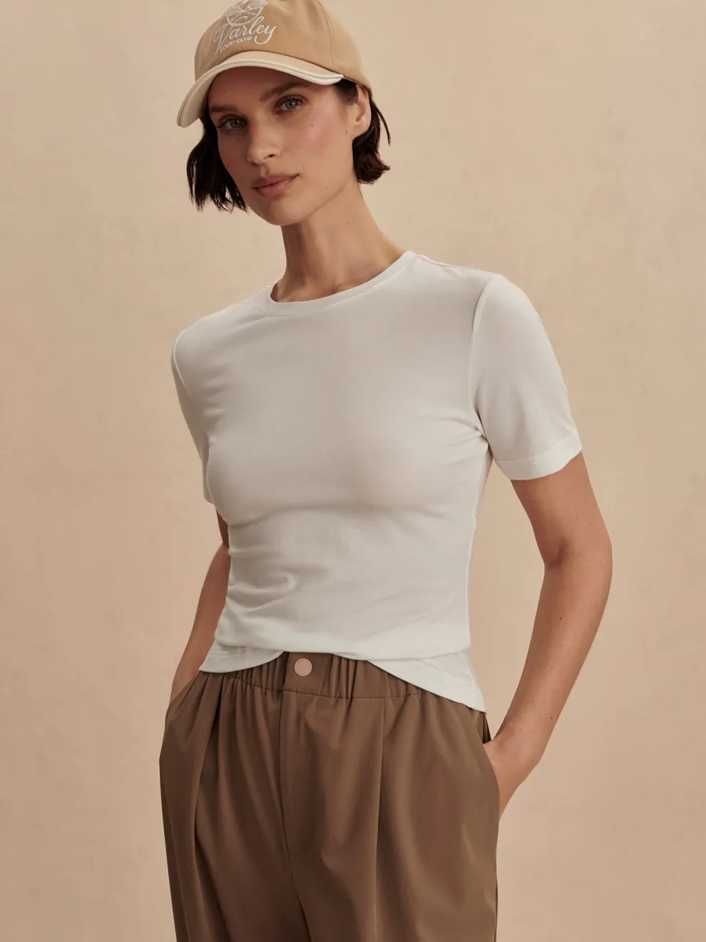 A timeless classic, reimagined. Your favorite crew neck tee in a fitted silhouette.