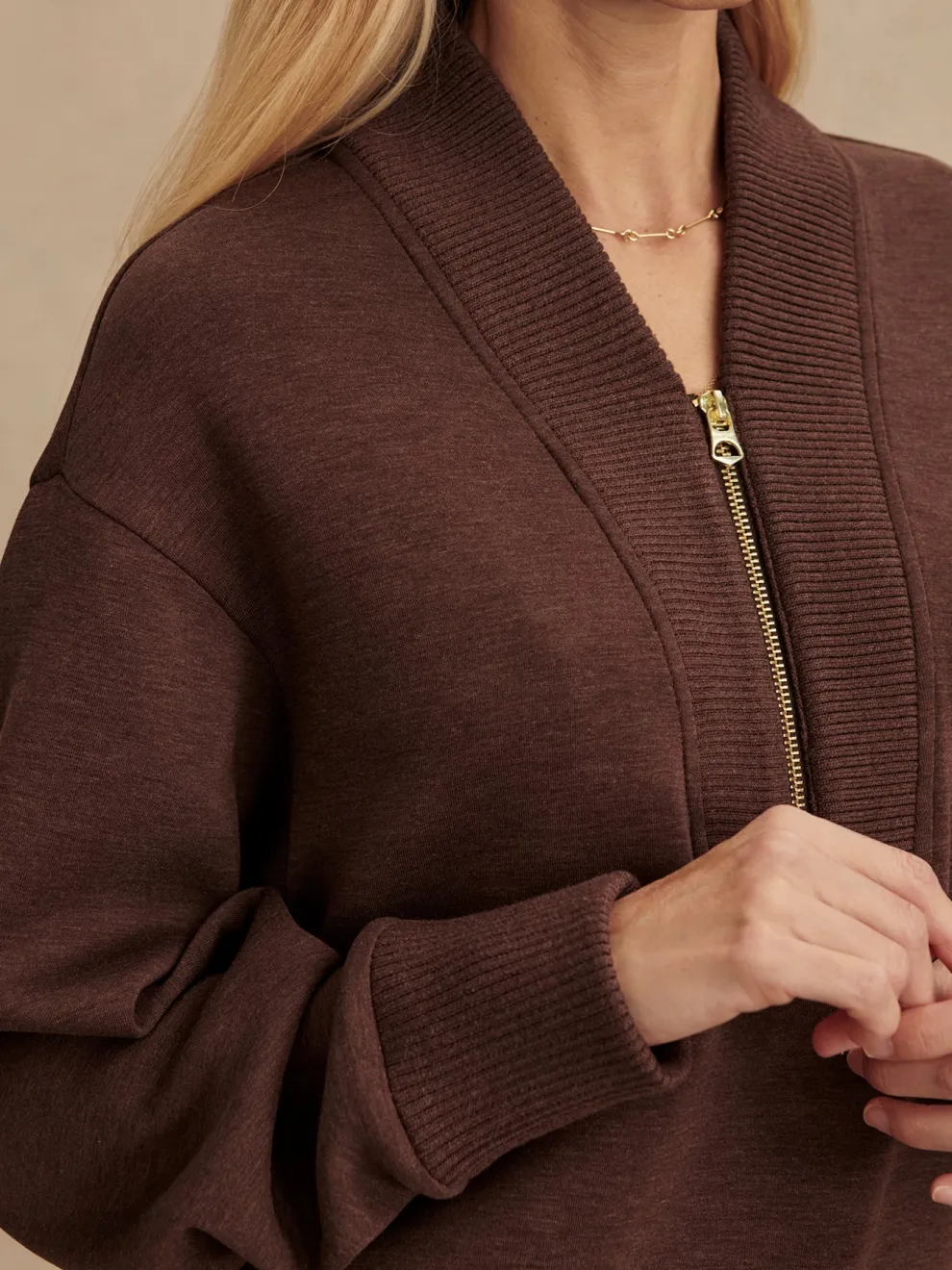 A new take on Varley’s bestselling Davidson sweat, the Sally features a V-neckline panel with a chunky rib knit.