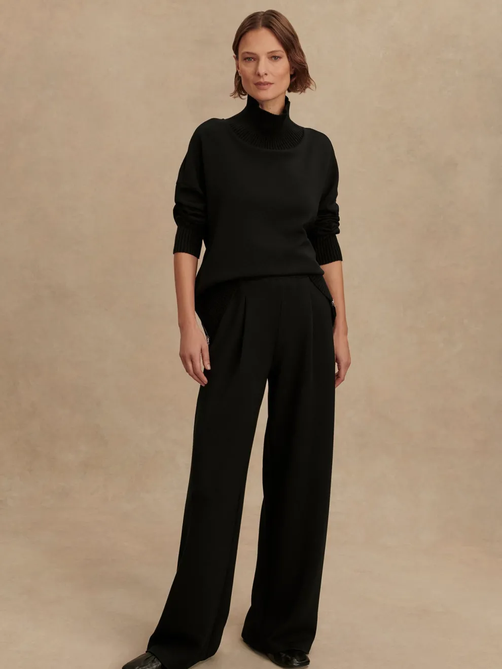 A versatile choice for everyday styling, this pant offers a chic extra wide-leg silhouette, accentuated with a high waist and pleat details at the front. Complete with a fully elasticated waistband and side entry pockets, it blends ultimate comfort with elegance.