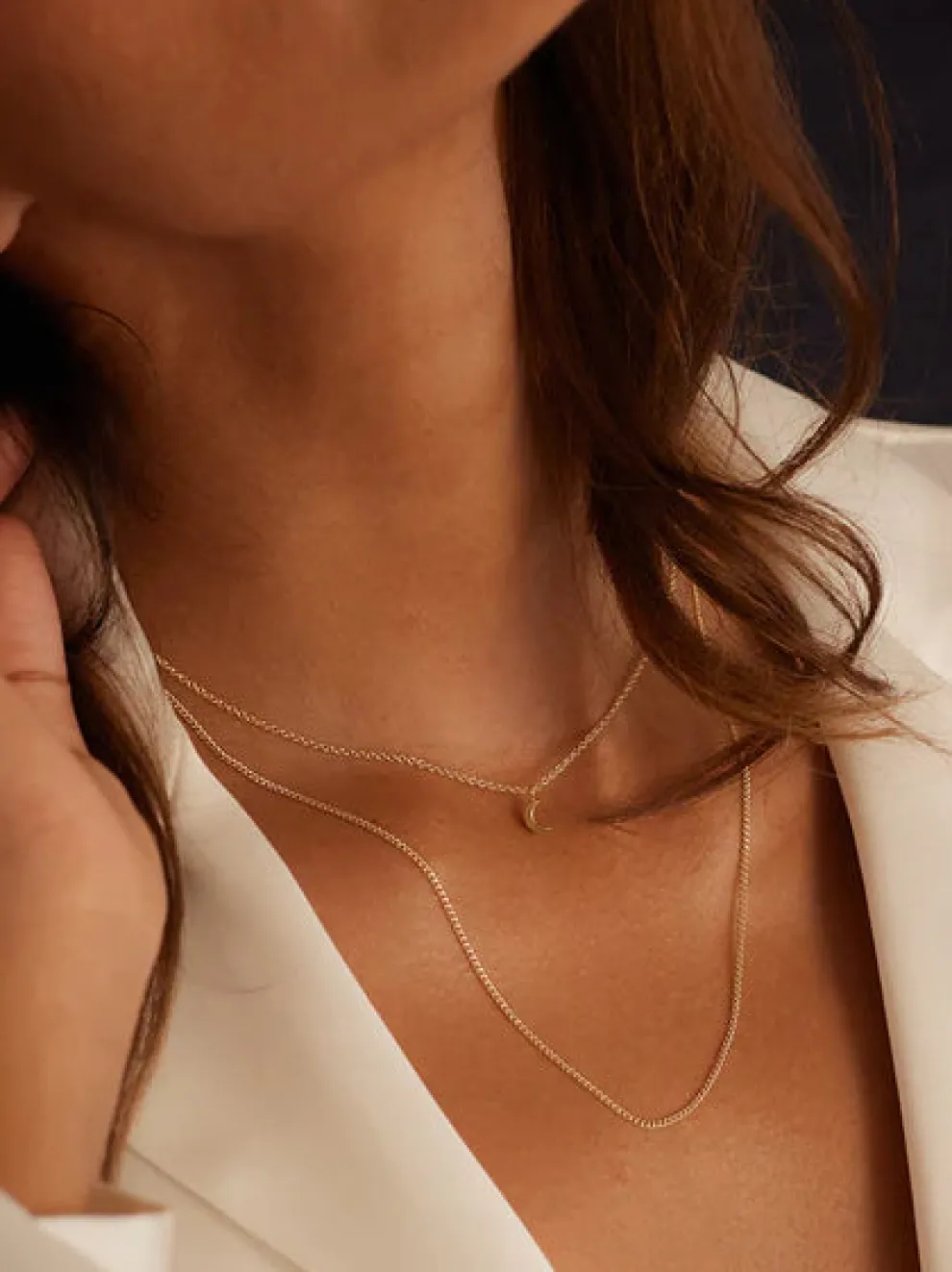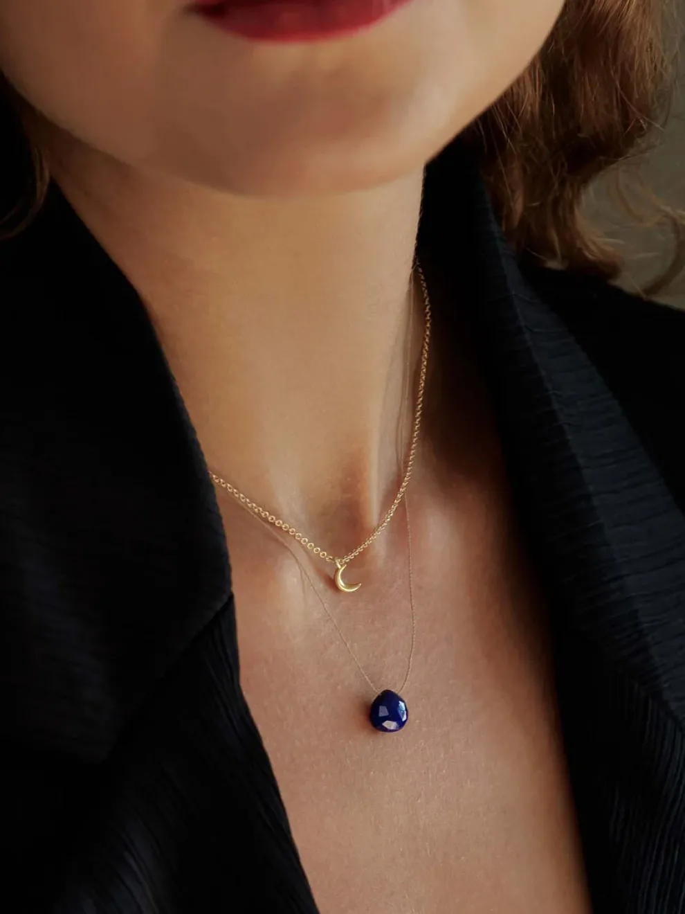 A handcrafted crescent moon pendant hangs from a delicate chain- afirm favourite to wear alone or stack with other necklaces.